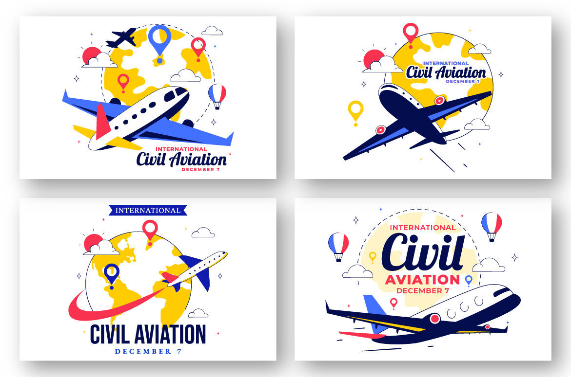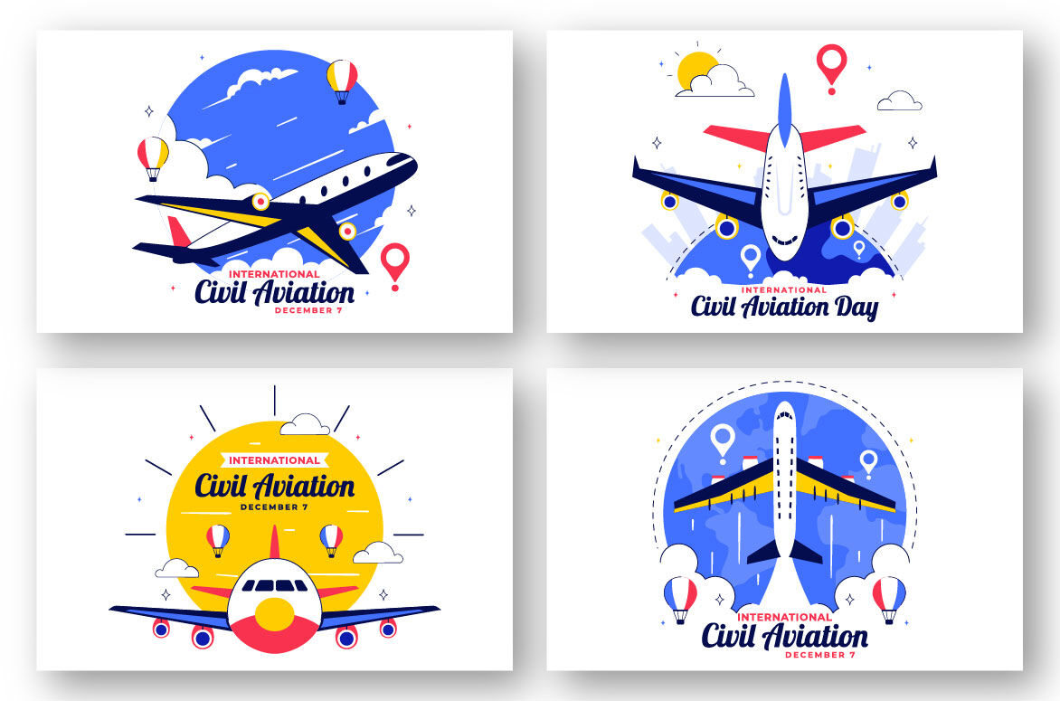 International Civil Aviation Day Illustration on December 7 Featuring an Airplane and Blue Sky View in Appreciation of Aviation in a Flat Background Suitable for Poster, Web Banner, Brochure, Landing Page and Others Background Template Features:    - Fully editable vector files, easy to edit the object, color and background     - Include 100% vector Ai, Eps 10, SVG    - PNG transparent background    - Include Psd Photoshop ( non grouped / unlabeled )    - Layered    - Preview jpeg    - Help File, to view more file properties    - Enjoy and don't hesitate to contact us    - Thanks :-)