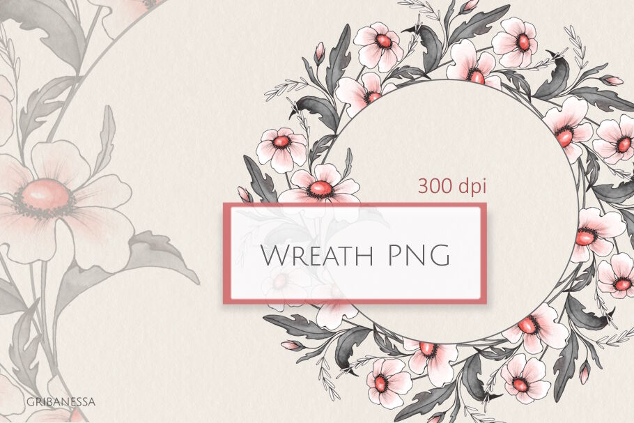 A beautiful transparent PNG wreath featuring detailed pink flowers and graceful dark gray leaves in a trendy ink style. This single high-resolution asset is ideal for creating custom stationery, printable art, feminine branding, DIY craft projects, and adding an elegant, professional frame to any design. Product Details: 1 PNG file on transparent background, 3600 px for the longest side, High resolution 300 DPI. Happy creating!