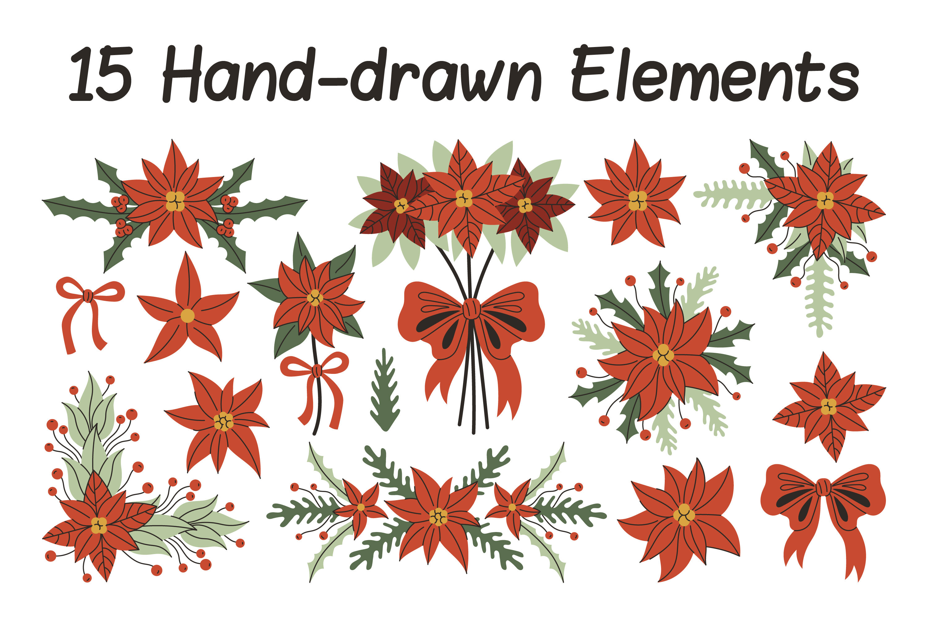 Bring a touch of vintage holiday charm to your designs with this Christmas Poinsettia PNG Clipart collection. Hand-drawn in a flat retro style, these playful poinsettia flowers, holly branches, and red bows add cozy, festive warmth to any project. Perfect for holiday cards, scrapbooking, stickers, invitations, wrapping paper, wall art, social media graphics, and more.