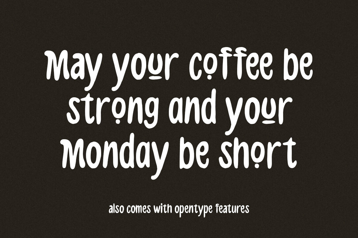 Sunday Coffee, a hand-drawn display font that feels warm, playfuf & organic. Its chunky letterforms feature soft, rounded edges and a slightly wobbly, organic shape that brings a cheerful, welcoming visual style. This isn't just a font; it's a feeling—perfect for creating a friendly, comforting atmosphere on beverage branding, baked goods packaging, cafe signs, charming quote graphics, or any project that needs a casual, handcrafted touch to make its message instantly approachable.