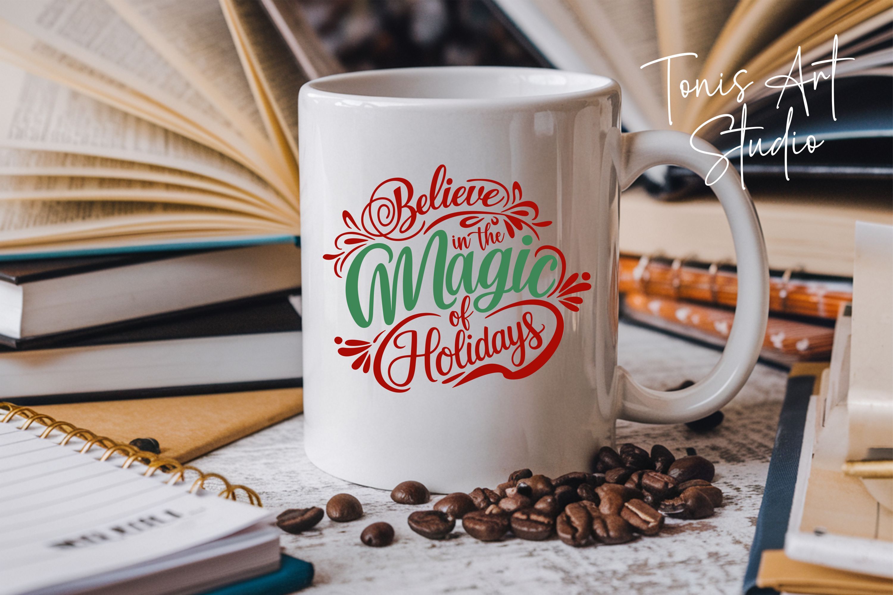 Celebrate the festive season with this enchanting “Believe in the Magic of Holidays” design, crafted to bring joy, warmth, and creativity to your holiday projects. Featuring elegant hand-lettered typography with decorative swirls and festive accents, this artwork is perfect for Christmas crafting, apparel, mugs, greeting cards, wall décor, and seasonal decorations. Its versatile style blends beautifully with both modern and traditional themes, making it an ideal choice for family gatherings, gift creations, or holiday market projects.