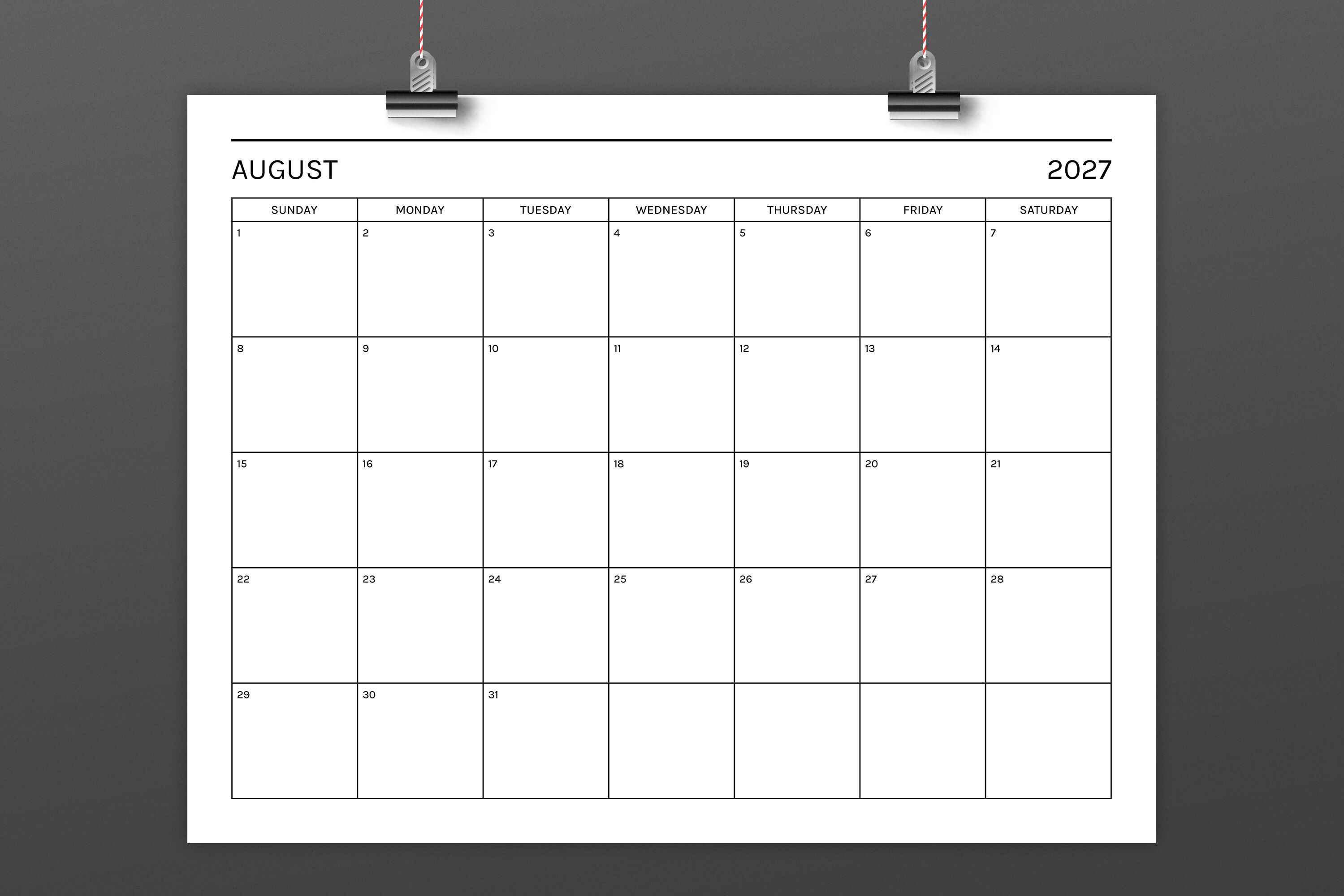 2027 Basic Modern 8.5 x 11 Inch Calendar Template