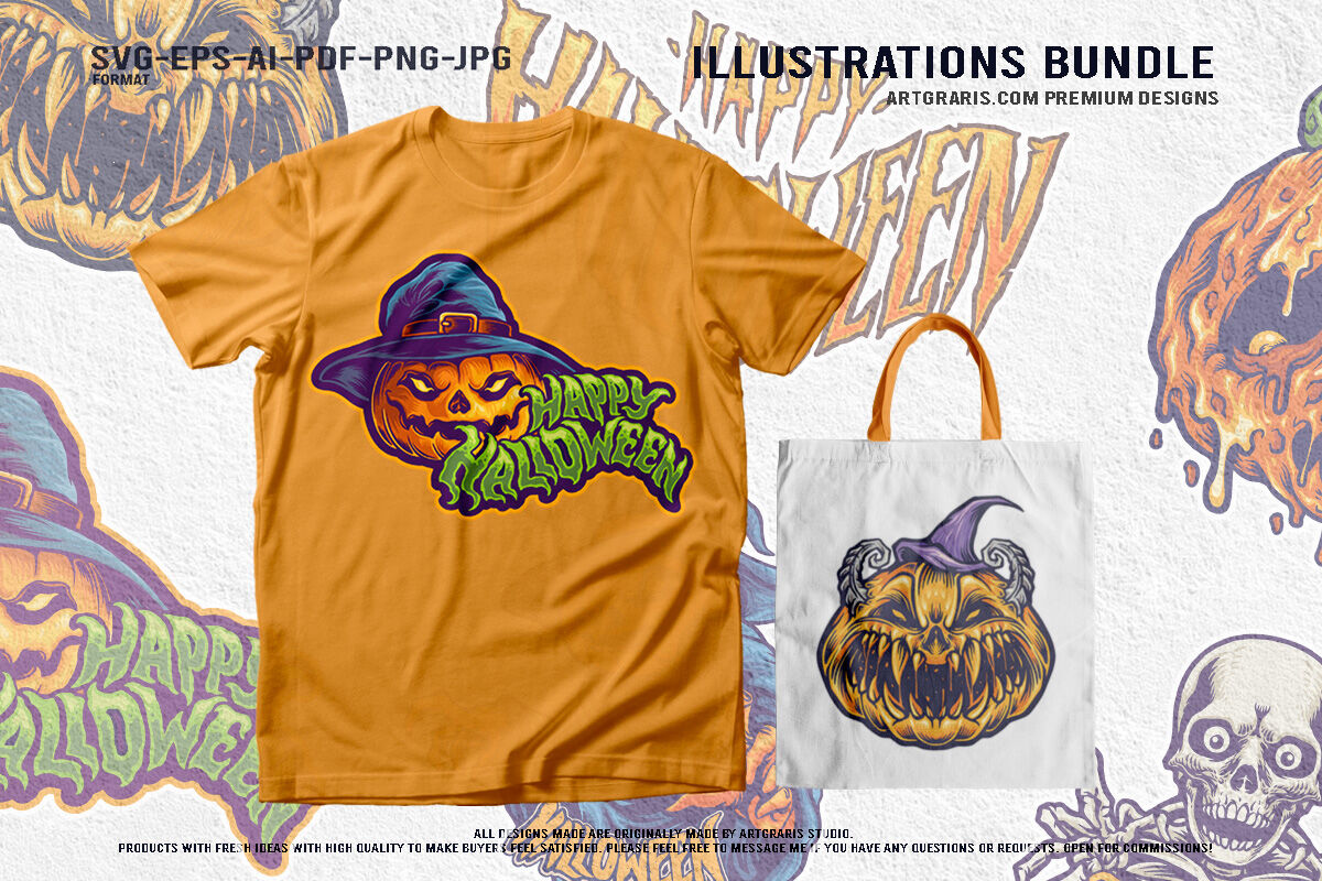 Cursed Pumpkin Faces And Haunted Skeleton Halloween Vector Pack