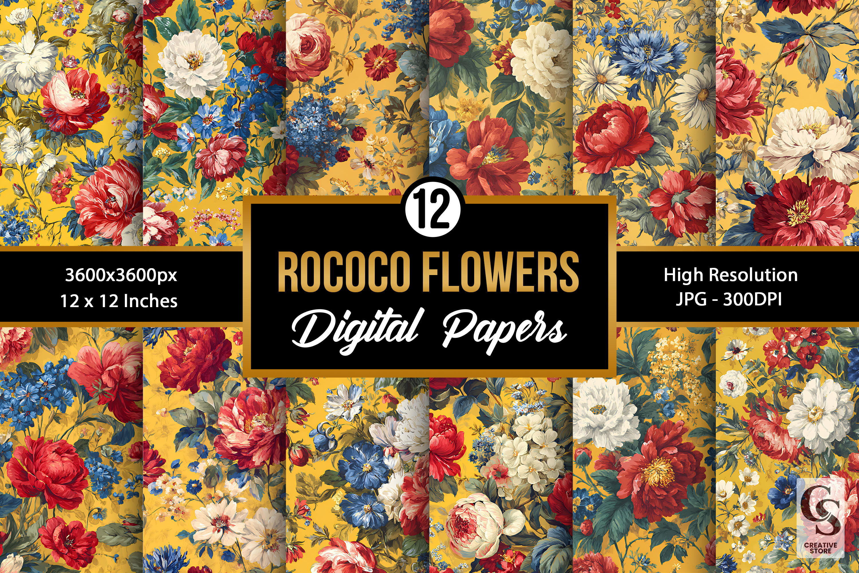Summer Rococo Flowers Digital Paper ★ Included ★ • 12 Digital Papers within the zip file. • All files in High-Resolution 300dpi • JPG files size 3600 x 3600 pixels (or 12″ x 12″) Perfect for • Gift wrapping • Greeting Cards • Planners/Journals • Invitations • Scrapbook Decorations • DIY Projects • Stationery • Backgrounds/Wallpapers • Wall art • Tumbler Wraps • Notebook Covers and many other craft projects. Note: My designs are created using AI software and then carefully refined by me to incorporate additional creativity. Each one is carefully crafted, from concept to final detail. I hope they add something special to your creative projects!
