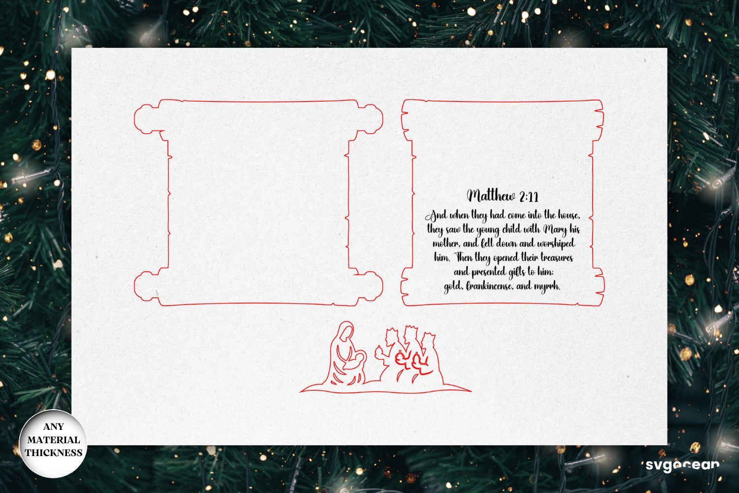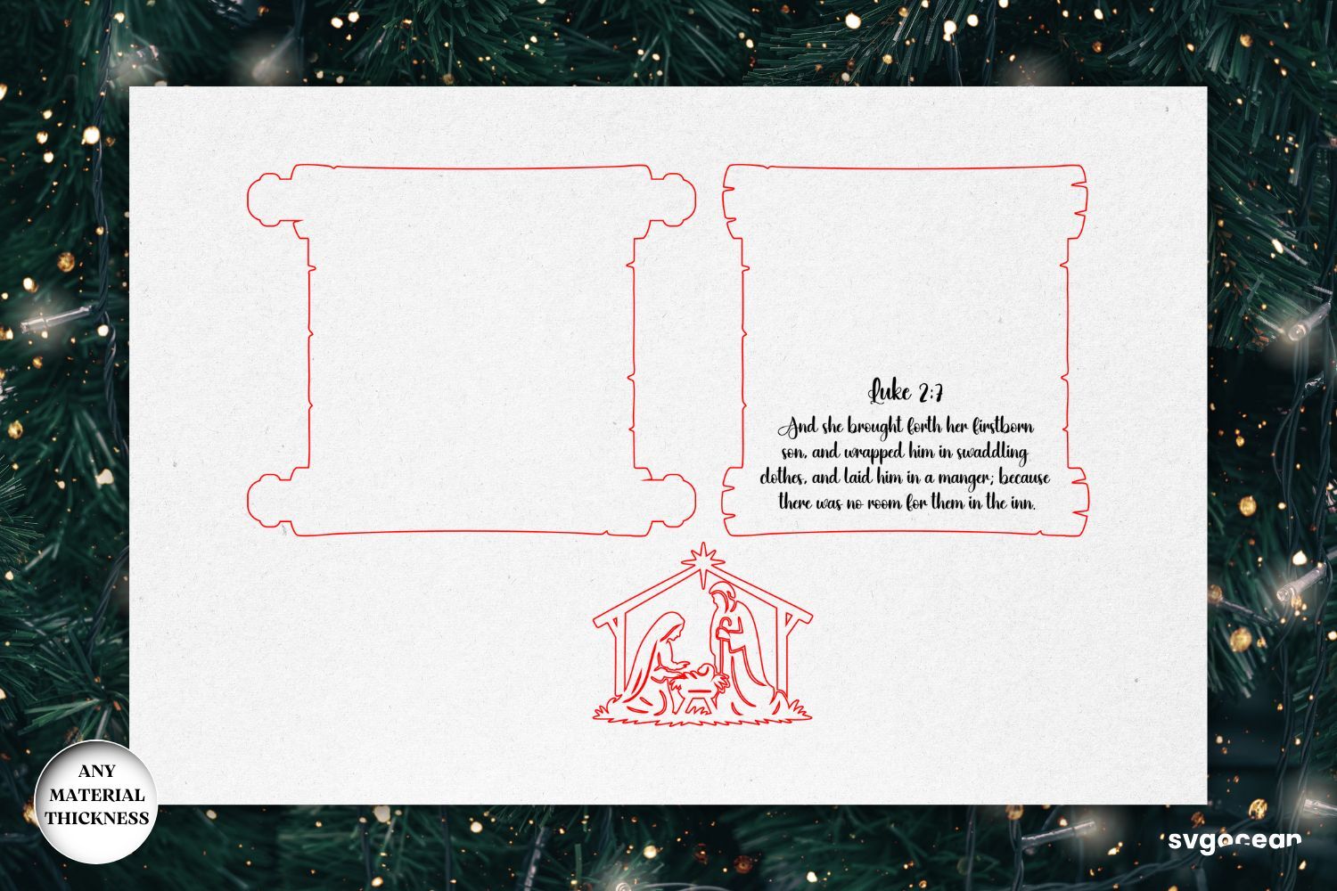 Nativity Scroll Ornaments SVG Bundle | Laser Cut | SVG Number of designs included: 8 Formats included: DWG, SVG, AI, EPS, DXF Wood thickness: Any Dimensions: Height: ≈ 10 cm (3.8 in) Width: ≈ 12 cm (4.6 in) Recommended material: Plywood, MDF, Acrylic, Plexiglas, Metal ✔️ HOW CAN I EXTRACT MY .ZIP FILE? You will need to extract to unzip or open your files. For mac you can simply double click the file and it should open automatically. For PC you can right click the file and choose extract all.  © All rights reserved