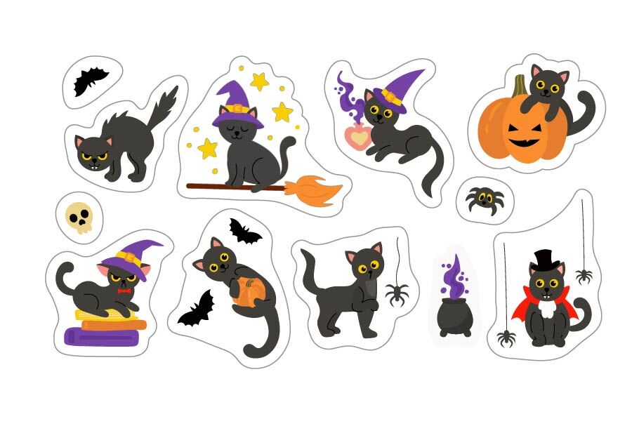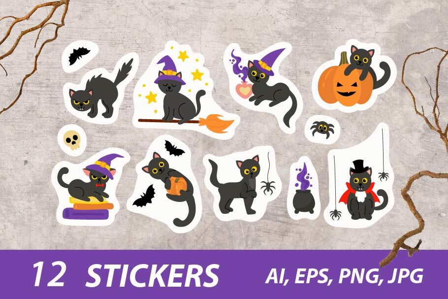 I am pleased to present you my collection. This collection: Halloween cats  stickers, includes 6 stickers are perfect for your planner, laptop stickers, scrapbooking, card making, decoration and many more projects. You will receive: 1.  Folder CRICUT_SILHOUETTE - Included ready to print 2 files PNG/JPG with all stickers and 1 PNG file with silhouettes for Silhouette Studio 2.  Folder HAND CUT - Included ready to print 2 files PNG/JPG, all stickers with hand cut lines 3.  Folder INDIVIDUALLY - including all 12 stickers individually PNG/JPG (files with transparent background 300 dpi) 4.  Folder VECTOR - Included 1 EPS and 1 AI files. Easy to edit and resize ** This is a digital file and no physical item will be shipped ** Thanks for stopping by!