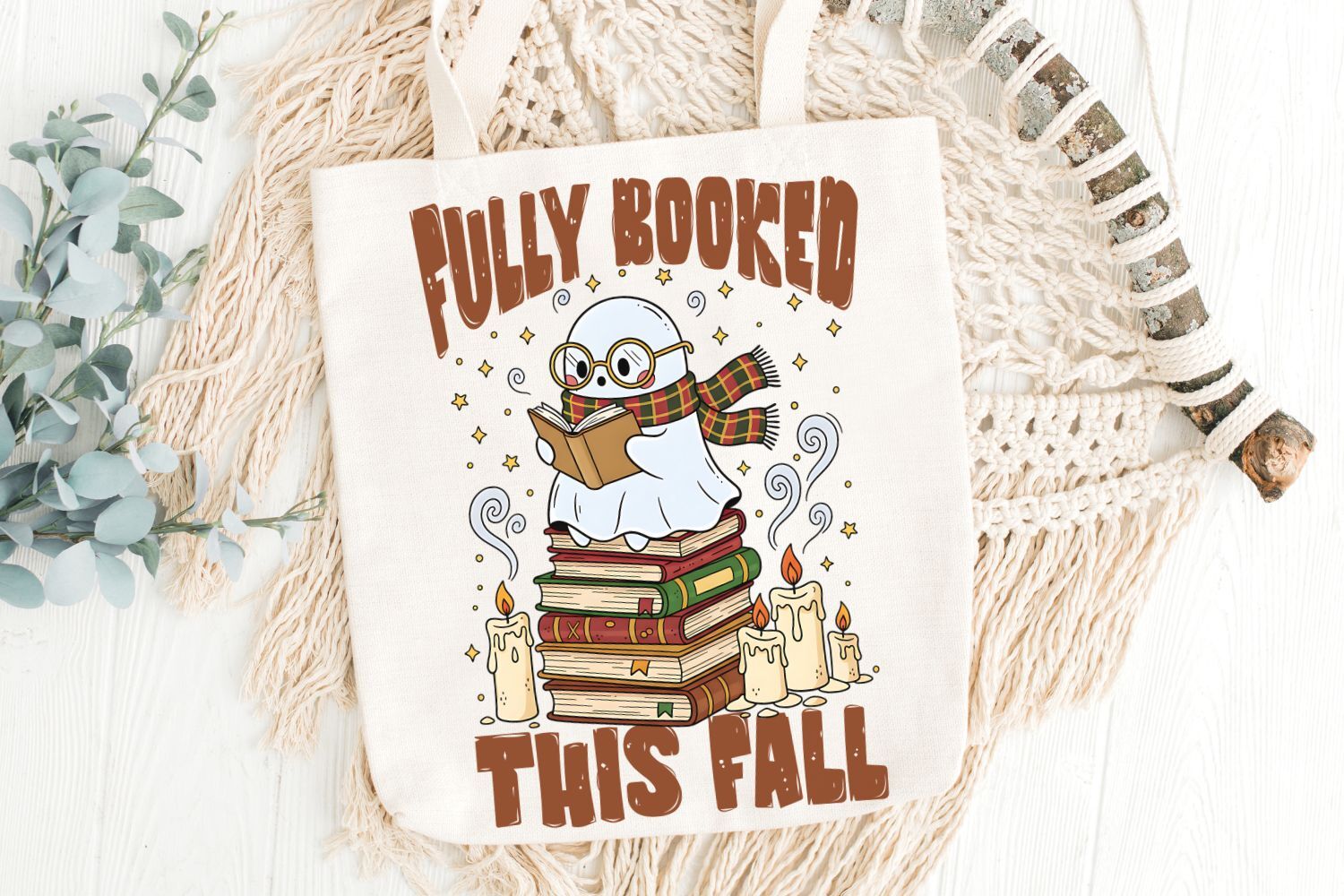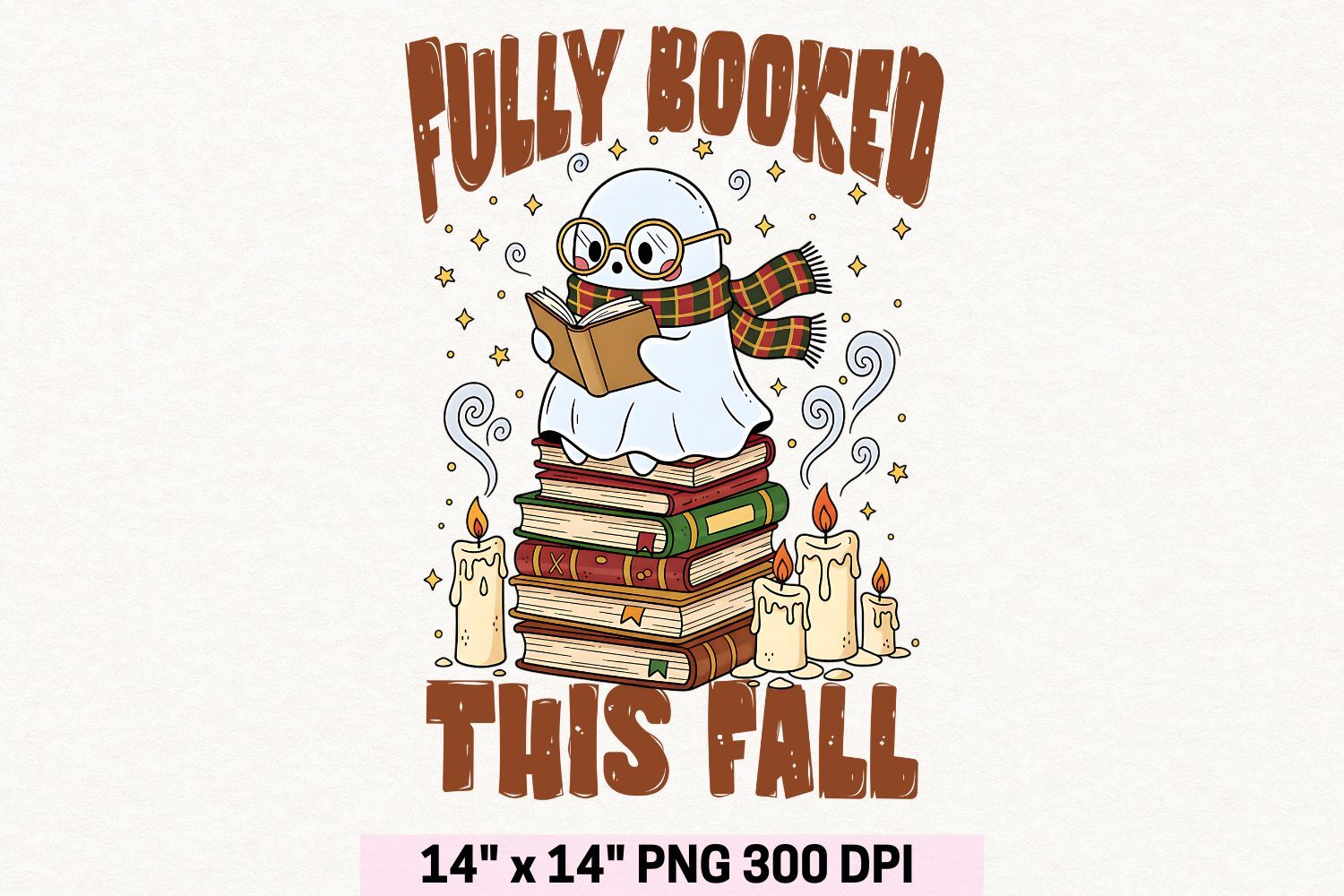 Fully Booked This Fall Svg, Bookish Halloween Ghost Sublimation PNG.