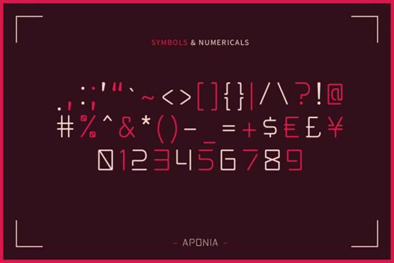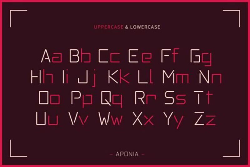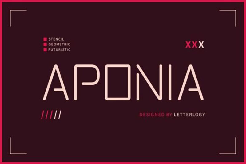 — INTRODUCING APONIA — The futuristic geometric sans serif stencil typeface inspired by the famous button icons of next-gen gaming consoles which aims to bridge the gap between reality and fantasy as well as bringing personality and uniqueness into your various design projects.