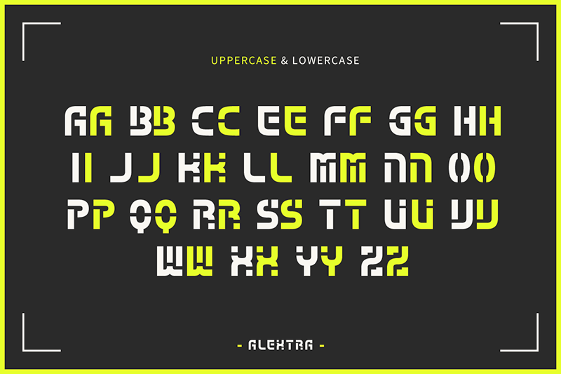 INTRODUCING ALEXTRA The bold and geometric stencil-style sans serif that merges precision with cutting-edge aesthetics. This font exudes a modern, industrial flair — perfect for tech branding, sci-fi posters, esports logos, and digital interfaces. Each letterform is built with clean, modular geometry, balancing readability with innovation. Alextra’s sharp angles and distinctive breaks create a dynamic rhythm, while its sleek structure makes it ideal for headlines, packaging, and apparel design. The fusion of stencil utility and futuristic design gives it a uniquely commanding presence across print and digital media.