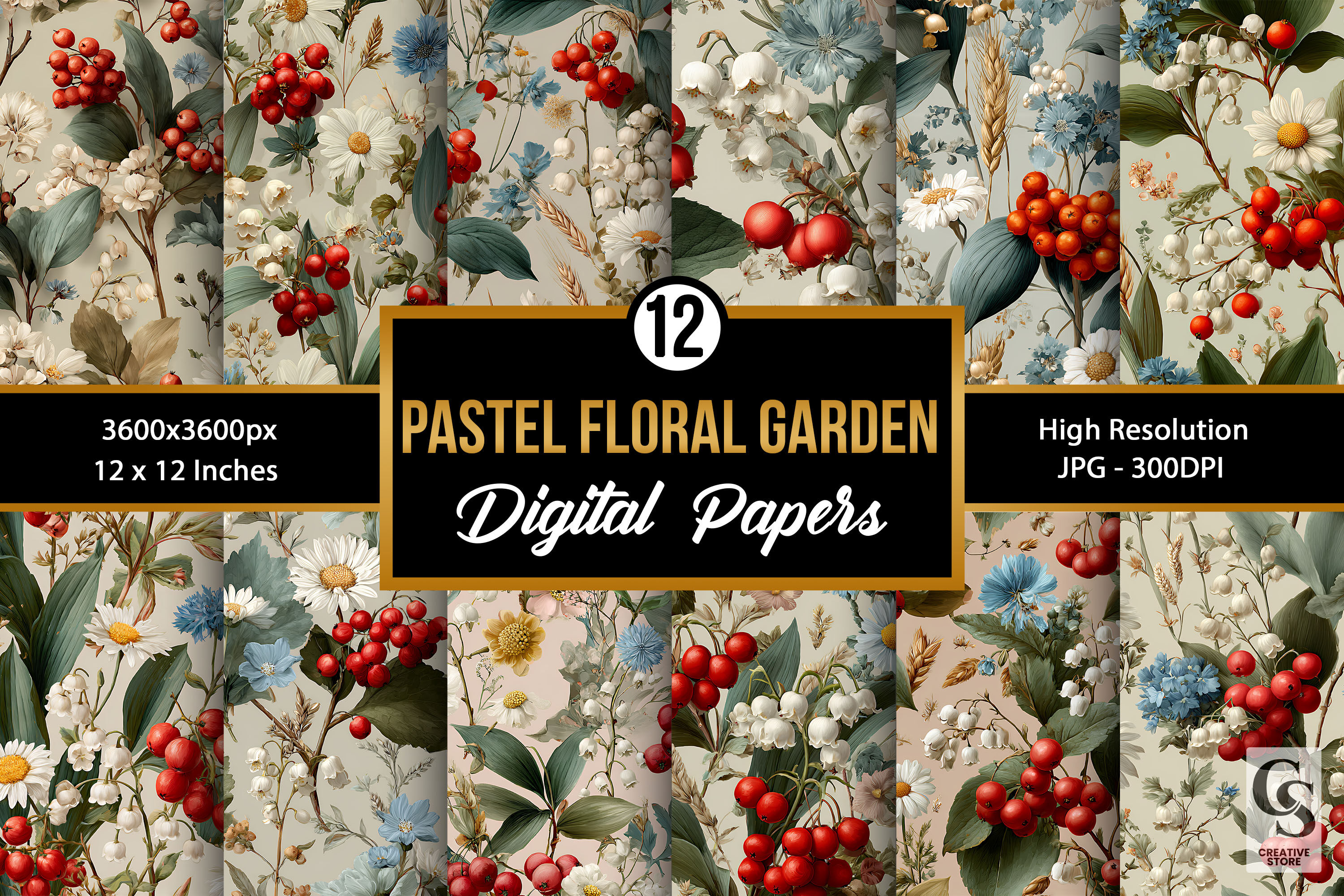 Botanical Floral Berries Seamless Patterns ★ Included ★ • 12 Digital Papers within the zip file. • All files in High-Resolution 300dpi • JPG files size 3600 x 3600 pixels (or 12″ x 12″) Perfect for • Gift wrapping • Greeting Cards • Planners/Journals • Invitations • Scrapbook Decorations • DIY Projects • Stationery • Backgrounds/Wallpapers • Wall art • Tumbler Wraps • Notebook Covers and many other craft projects. Note: My designs are created using AI software and then carefully refined by me to incorporate additional creativity. Each one is carefully crafted, from concept to final detail. I hope they add something special to your creative projects!