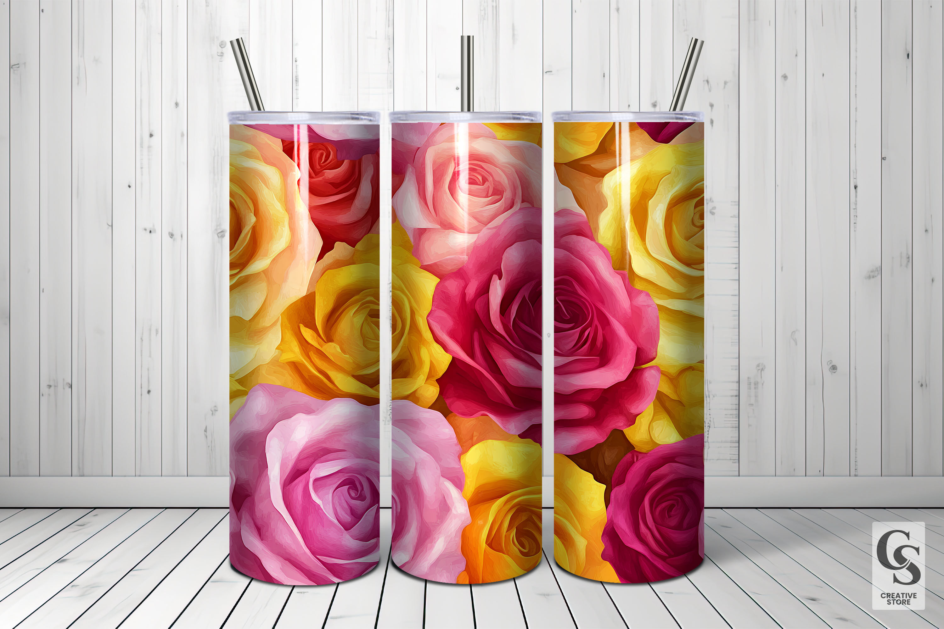 Pink and Yellow Roses Digital Paper Seamless Patterns