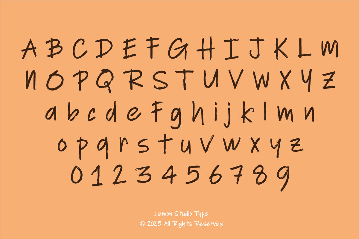 Bitten Cheez is a vibrant handwritten font that infuses energy and character into your designs. With bold strokes and an authentic hand-drawn feel, it embodies spontaneity, making it perfect for projects that seek a memorable, contemporary touch. Each letter flows with casual charm, creating a friendly atmosphere. Ideal for logos, packaging, posters, and social media visuals, this font adds creativity and attitude. Its unique irregular curves and lively rhythm give your text a dynamic quality, making it feel alive and full of personality. Whether for food brands, lifestyle products, or engaging digital content, Bitten Cheez offers a delightful blend of playfulness and style.