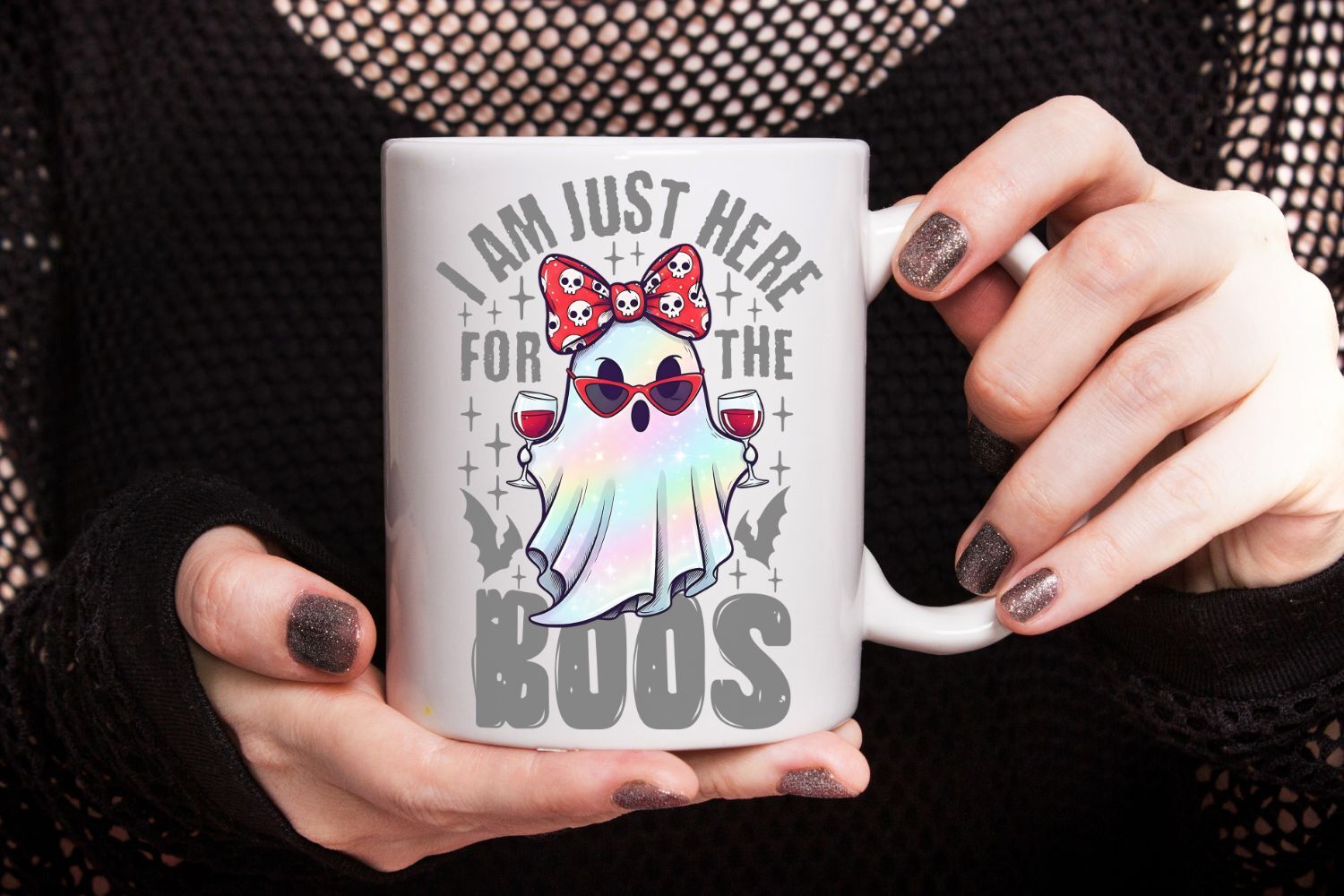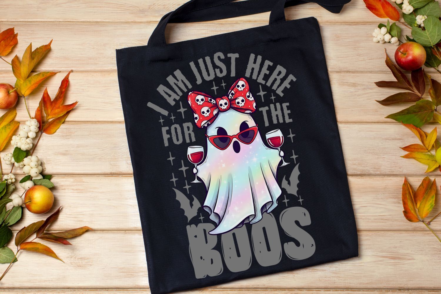 I am Just Here For The Boos Png, Wine Lover Halloween Png.