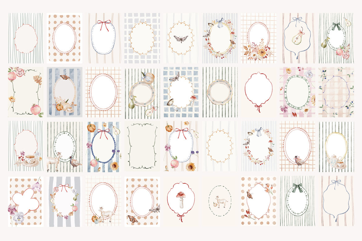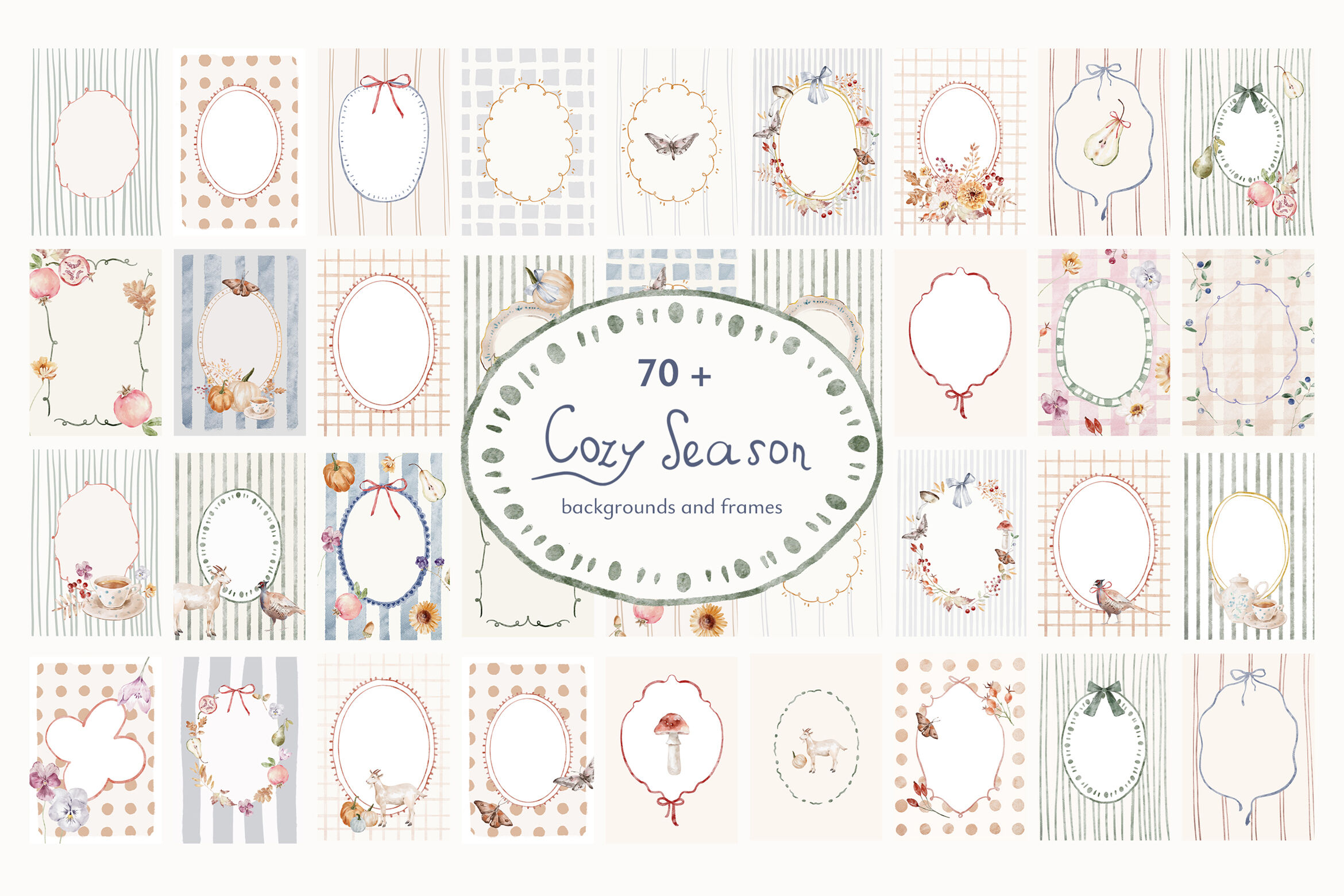 Cozy Season - a set of watercolor frames and backgrounds inspired by the magic of fall and the warmth of cottagecore aesthetics. Every element is hand-painted in watercolor will be a wonderful addition to your creative projects: invitations, greeting cards, packaging designs, wedding invitations, textiles, posters, gifts, stationery, moodboards, posters, wall art, stickers, textile design, decor and much more. This set included: - 80 frames and backgrounds, png, 300 dpi (~ 2481x3507 px)