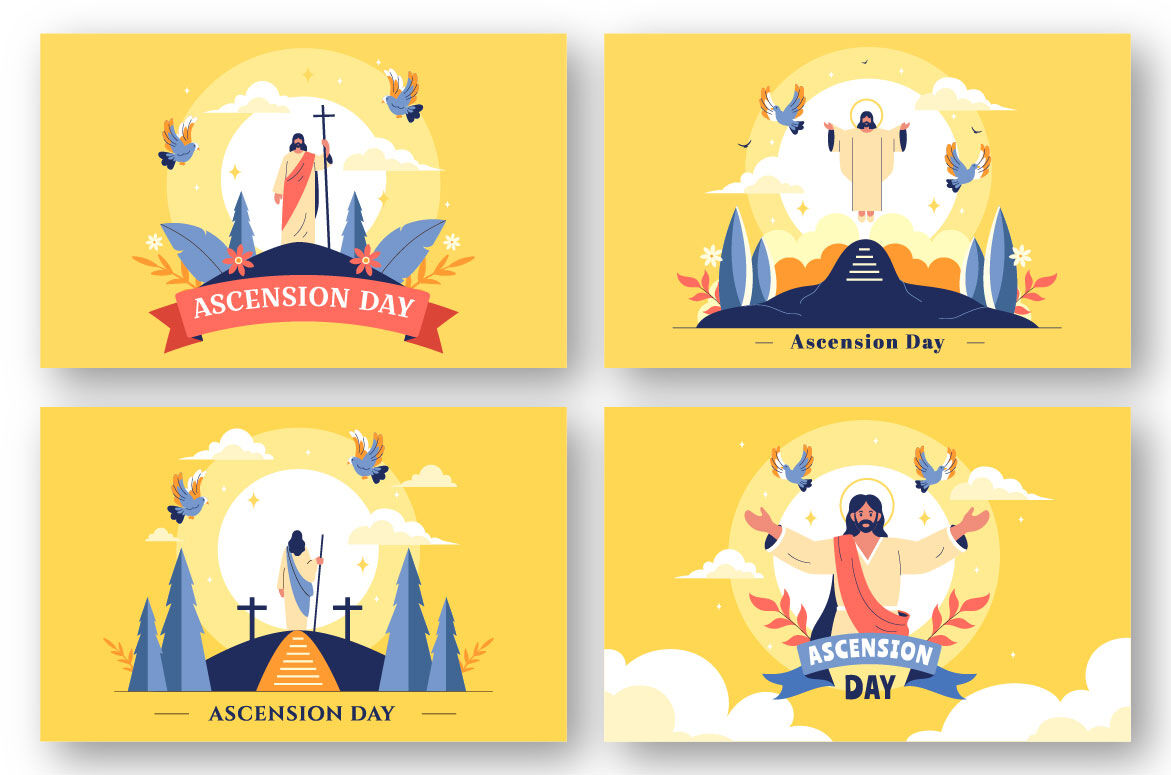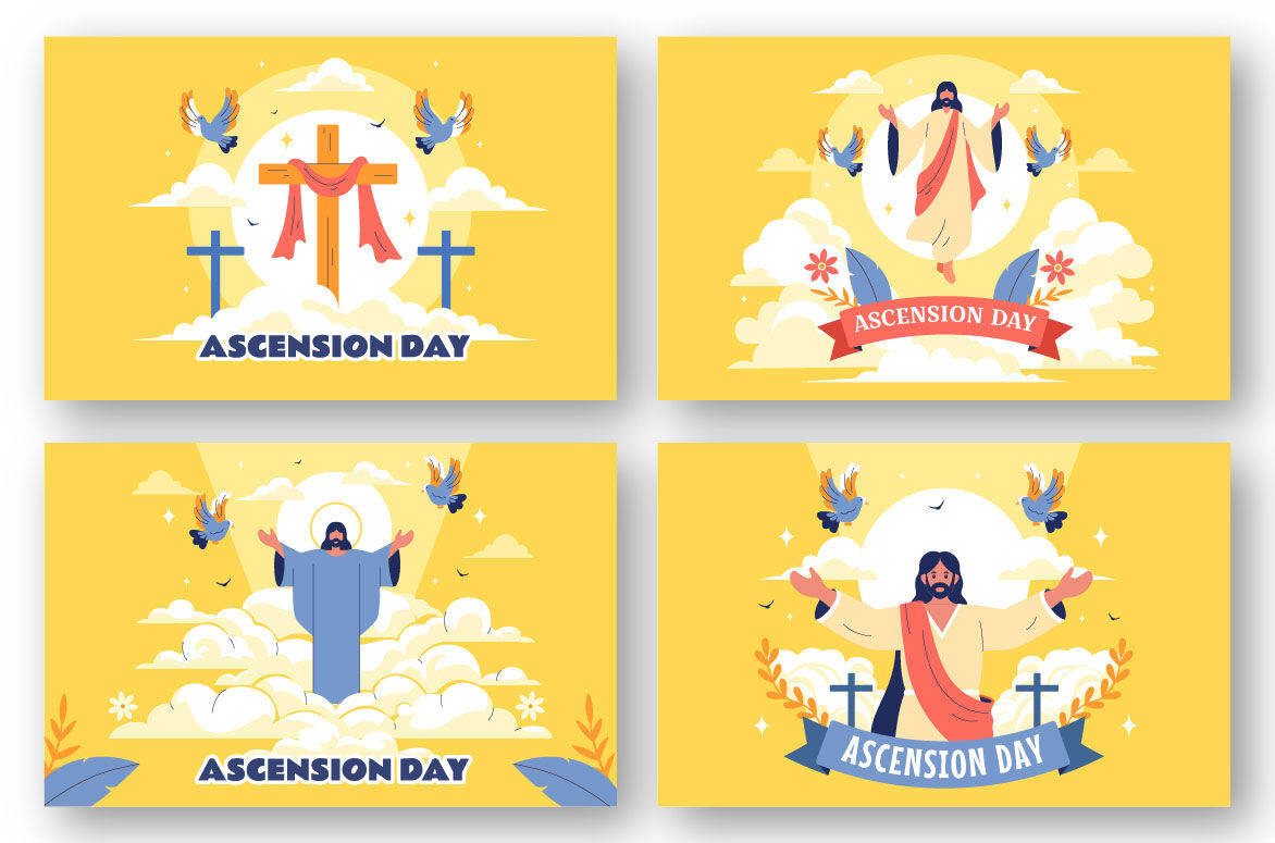 Ascension Day Vector Illustration Featuring the Assumption of Mary in Christian Tradition with the Feast of the Blessed Virgin and Doves in Heaven Suitable for Poster, Web Banner, Brochure, Landing Page and Others Background Template Features:    - Fully editable vector files, easy to edit the object, color and background     - Include 100% vector Ai, Eps 10, SVG    - PNG transparent background    - Include Psd Photoshop ( non grouped / unlabeled )    - Layered    - Preview jpeg    - Help File, to view more file properties    - Enjoy and don't hesitate to contact us    - Thanks :-)