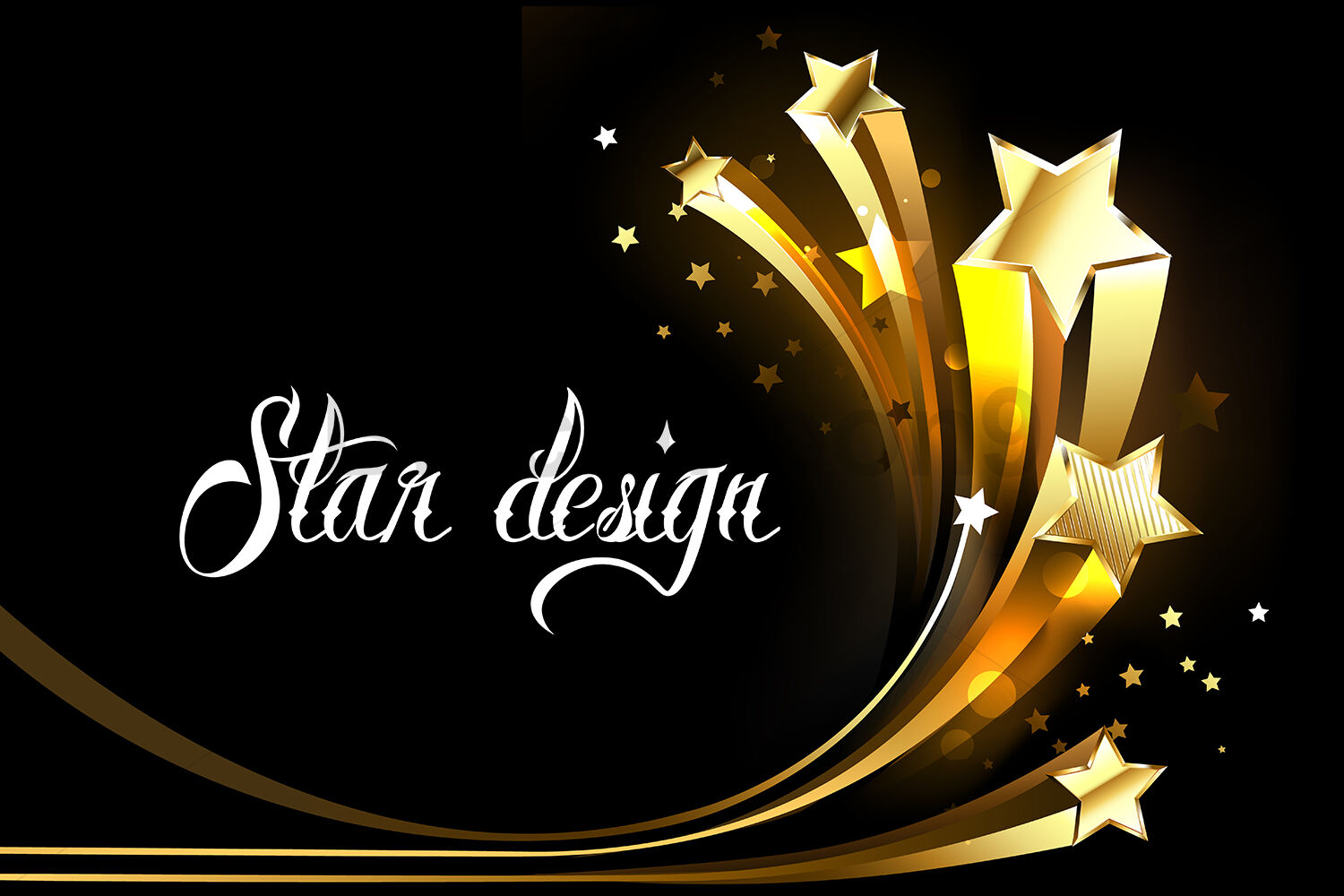 Rising, golden, shiny, fast stars and comets with long tail on black background. Golden star. Zip file includes editable EPS + high quality render in JPG format.