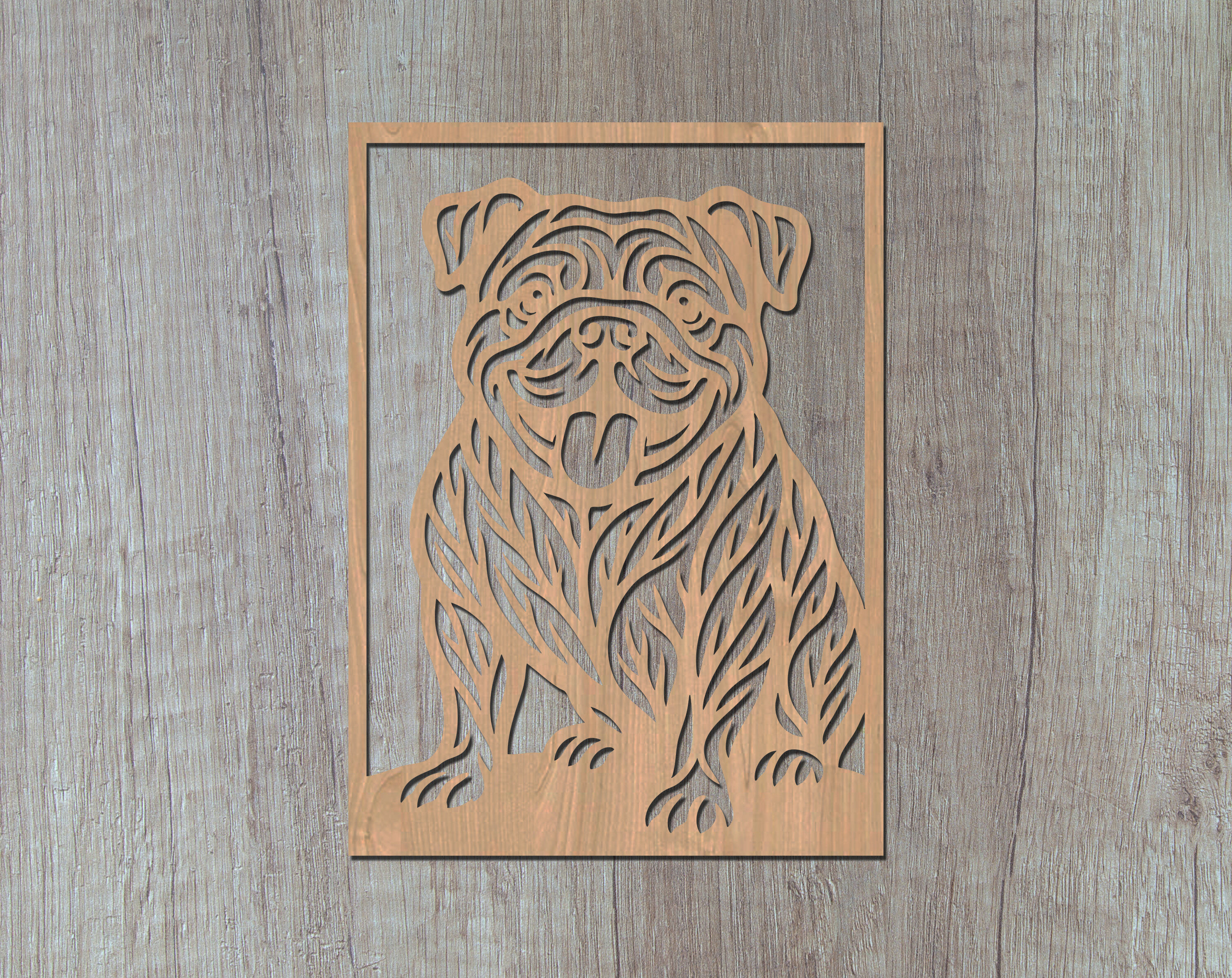 English Bulldog Laser SVG, Cute Dog Laser Cut, Pet Lover Design