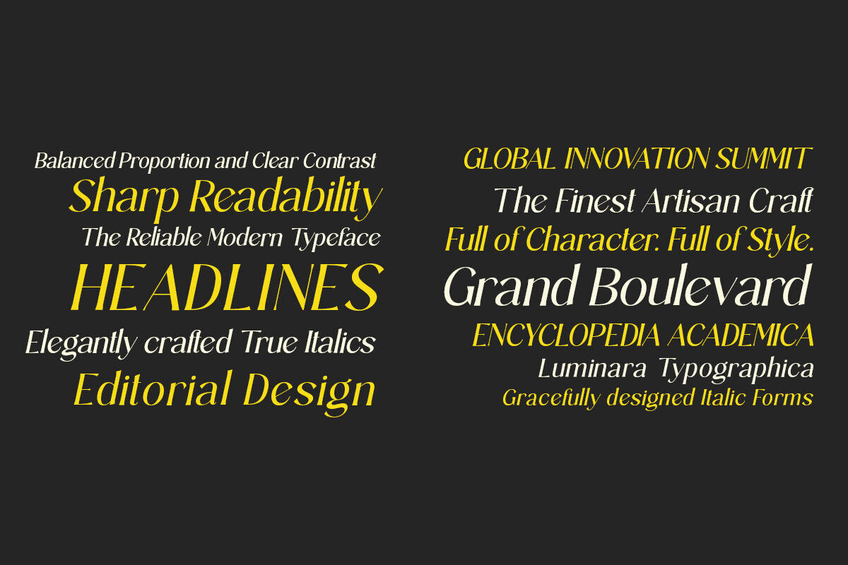 Sarghet Serif Pro has an elegant and modern character, combining smooth curves and sharp edges in each letter. Its design emphasizes a luxurious and artistic feel, perfect for visual projects such as branding, editorial, or premium product packaging. The bold yet soft serif style makes Sarghet classy, ​​easy to read, and full of personality, conveying both a professional and aesthetic impression.