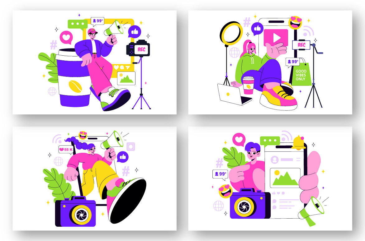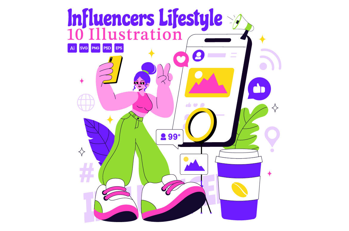 Influencers Lifestyle Vector Illustration Featuring a Photo on Social Media with a Smartphone for Followers to Promote Products and Brand Endorsements Suitable for Poster, Web Banner, Brochure, Landing Page and Others Background Template Features:    - Fully editable vector files, easy to edit the object, color and background     - Include 100% vector Ai, Eps 10, SVG    - PNG transparent background    - Include Psd Photoshop ( non grouped / unlabeled )    - Layered    - Preview jpeg    - Help File, to view more file properties    - Enjoy and don't hesitate to contact us    - Thanks :-)