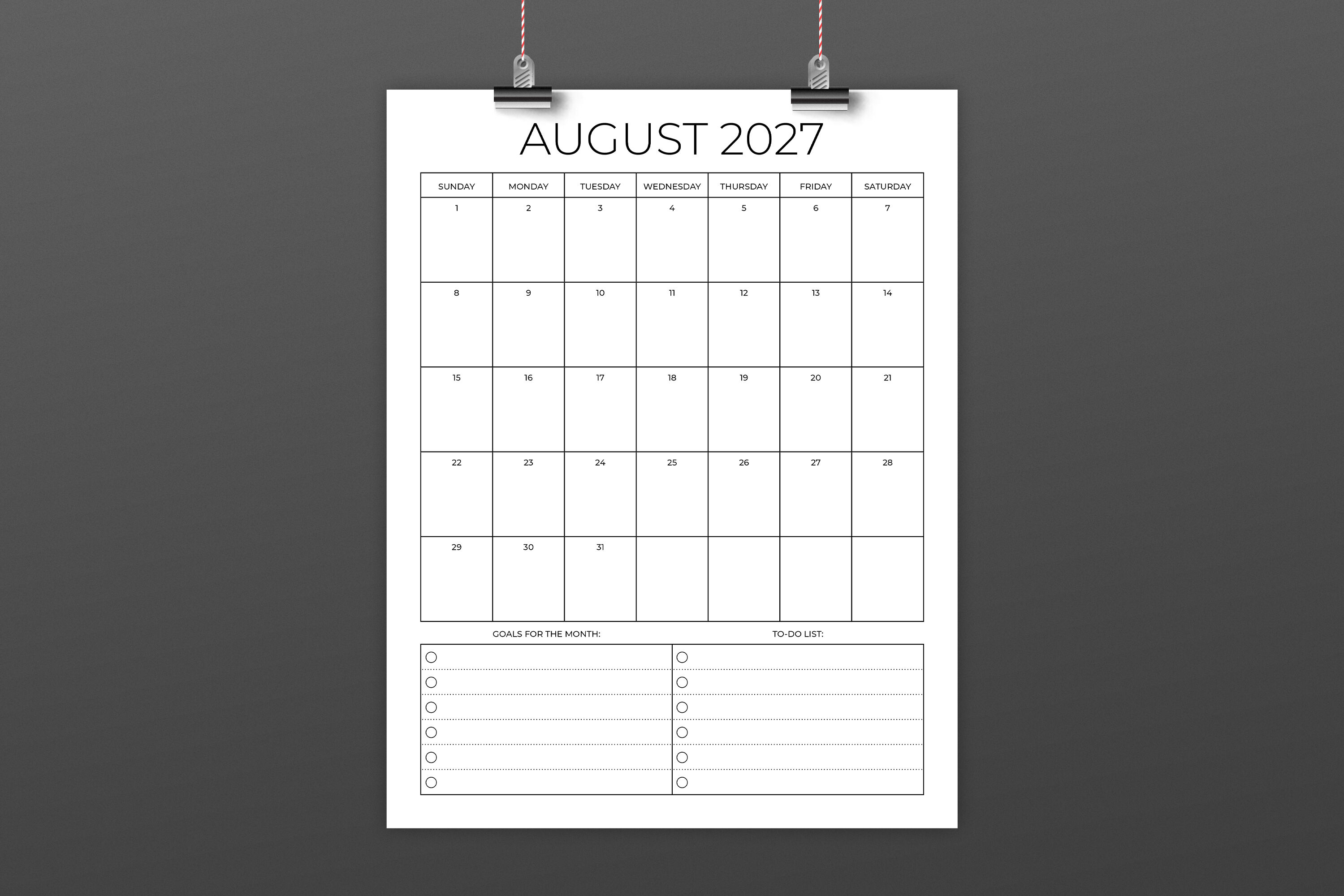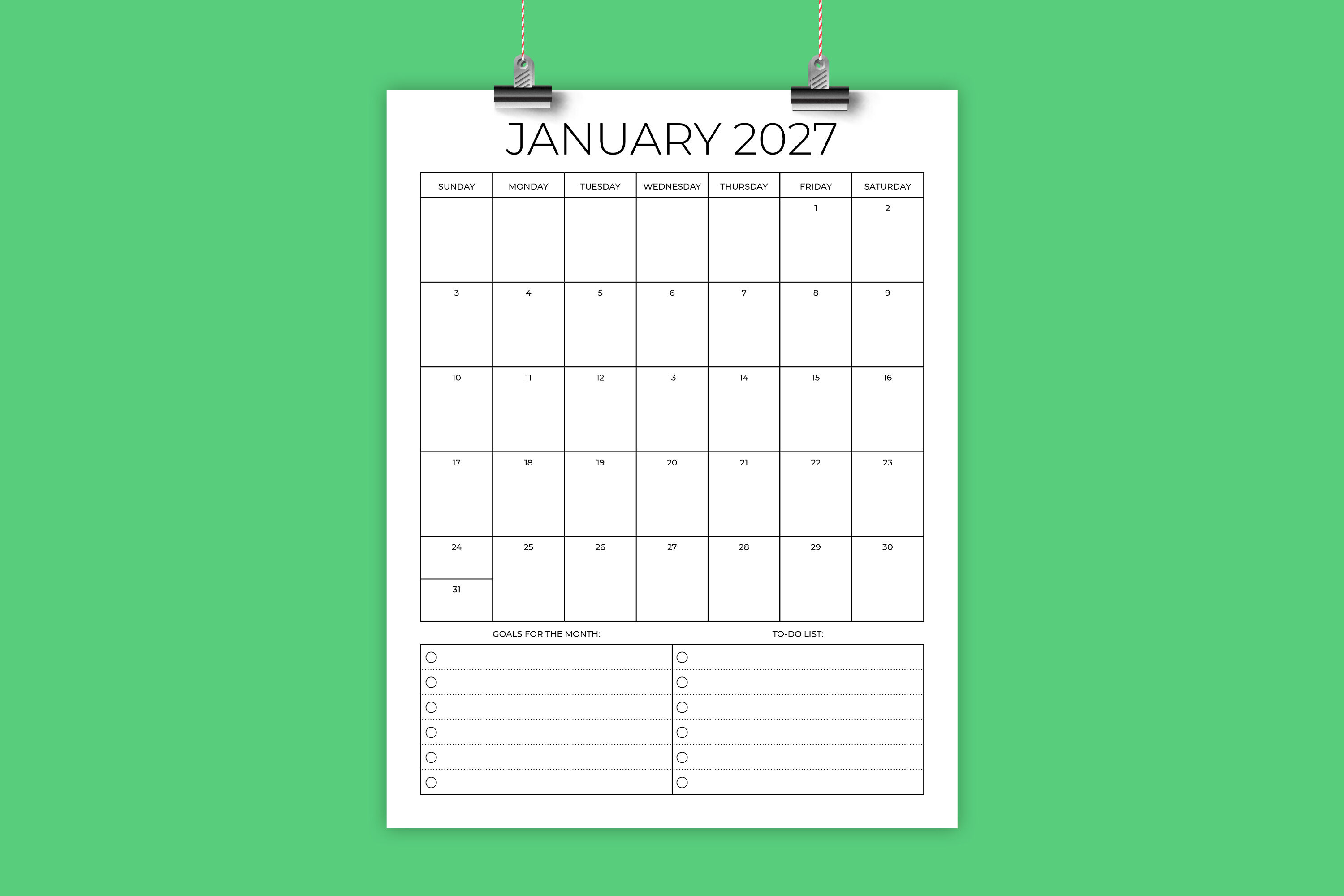 2027 Vertical 8.5 x 11 Inch Planner Calendar Template