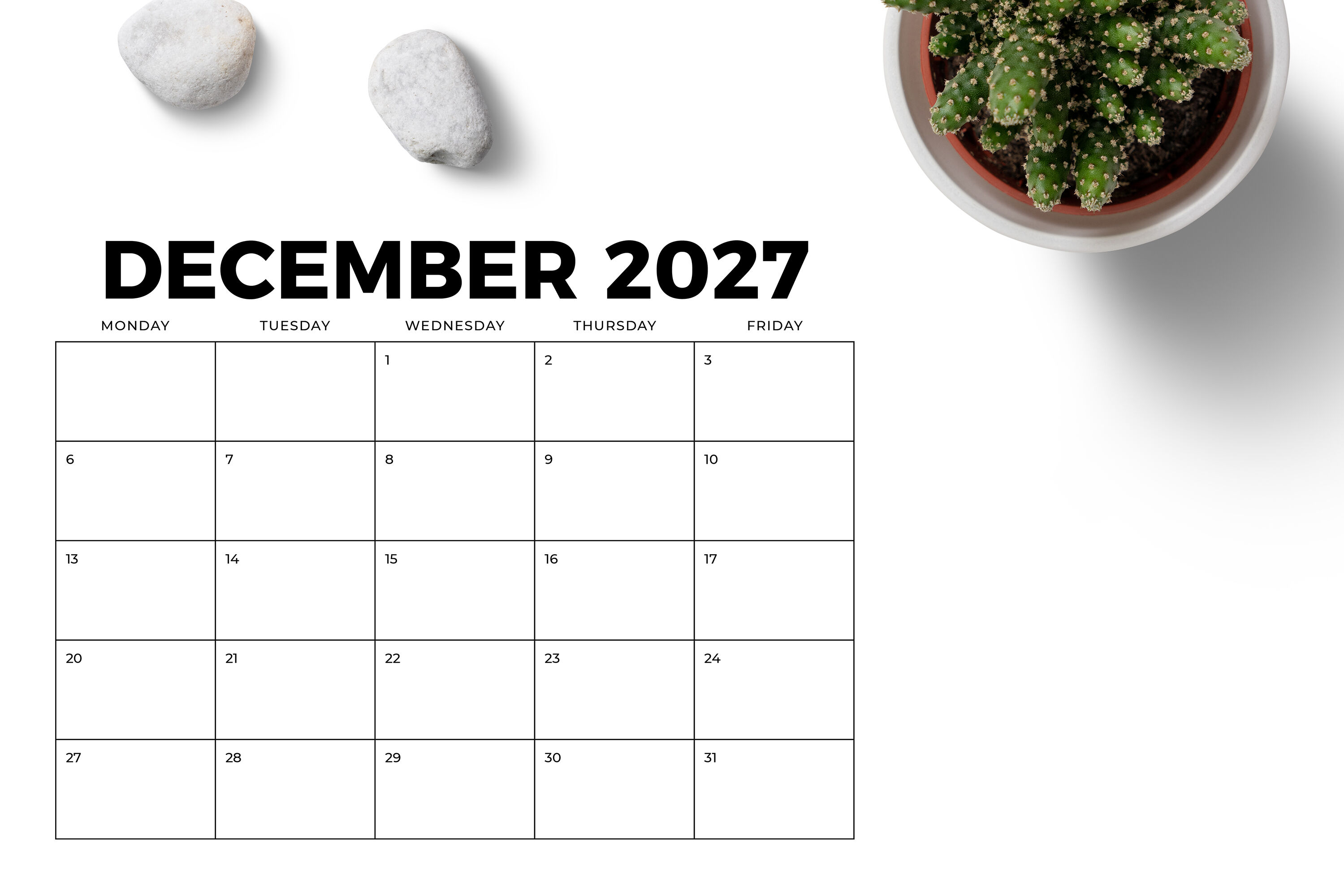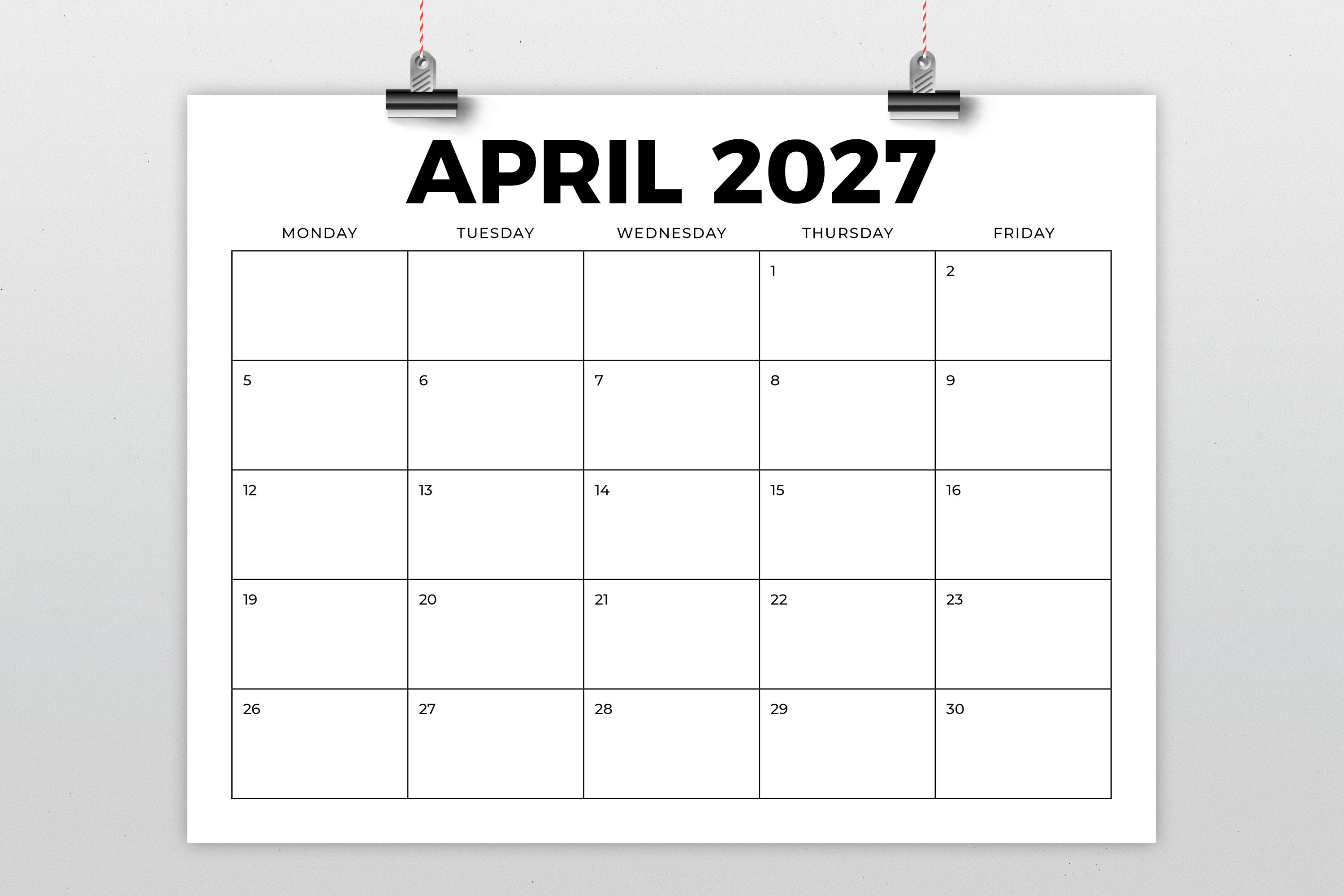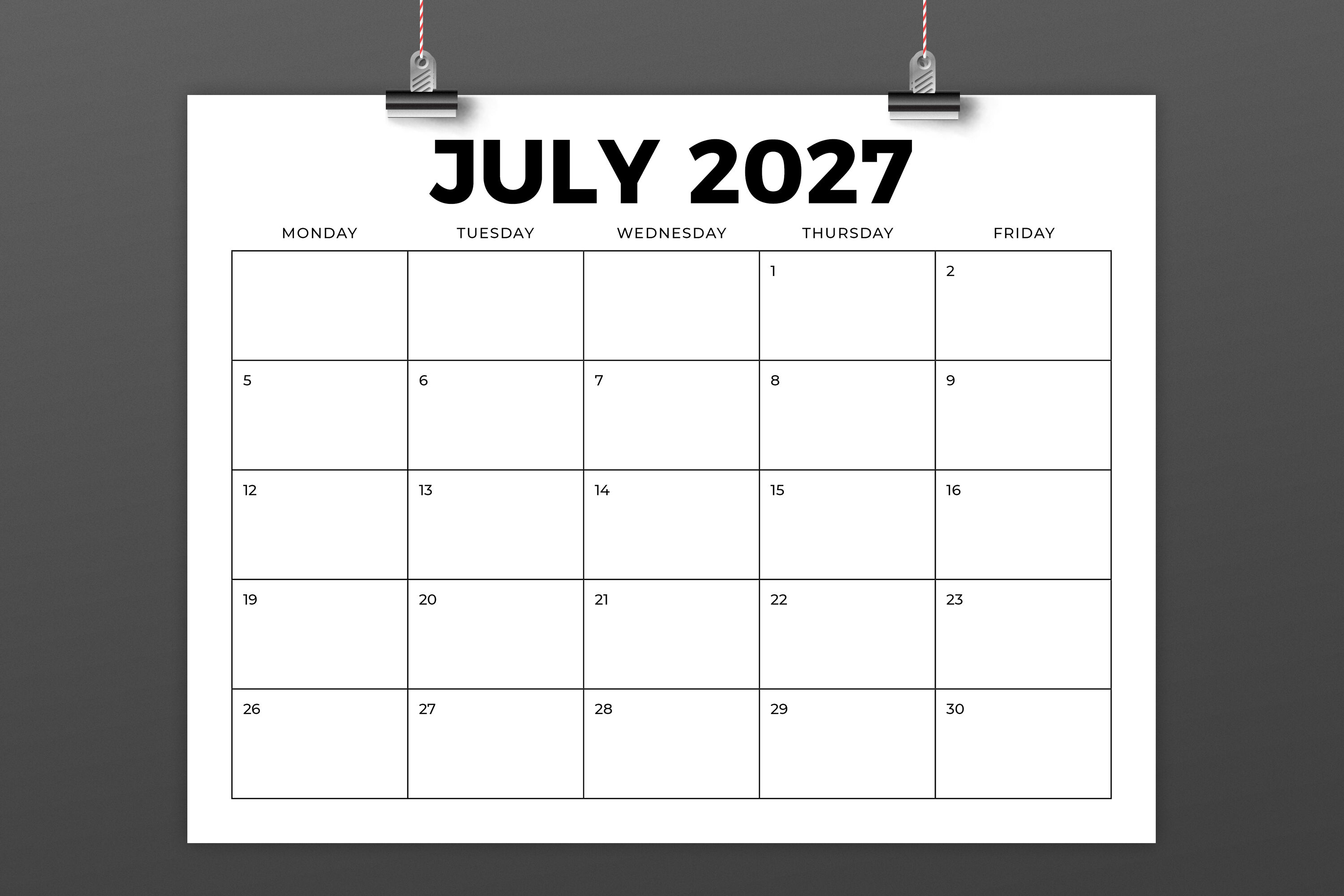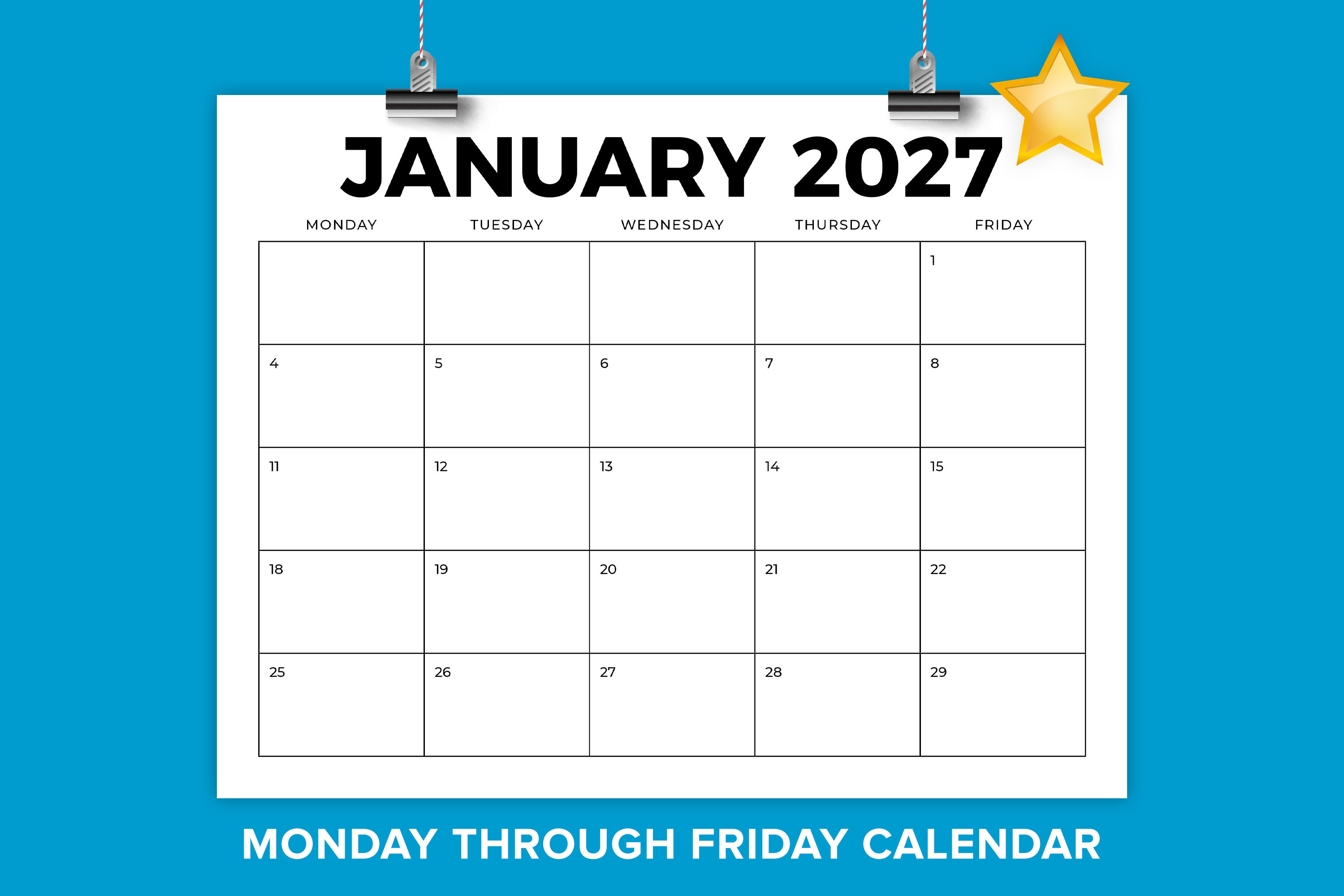 2027 8.5 x 11 Inch Bold Monday to Friday Calendar Template