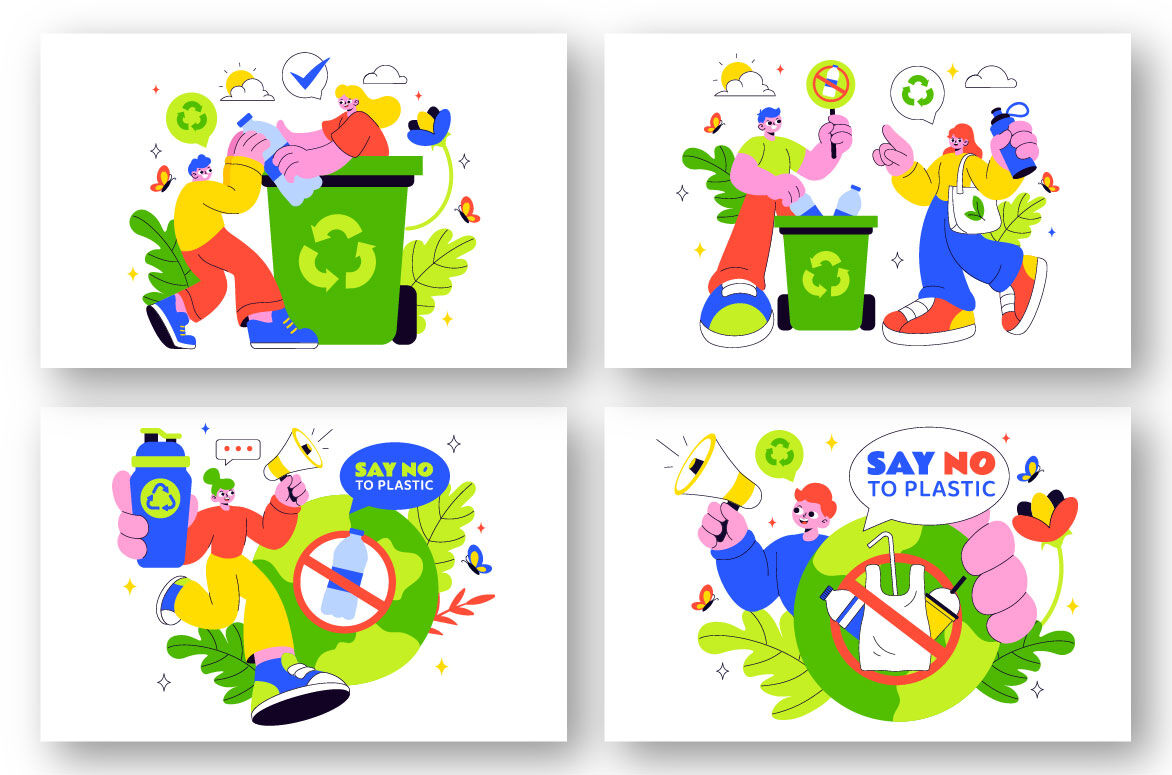 Plastic Waste Reduction Vector Illustration Featuring Waste Minimization, Organic Garbage Management, And Environmental Awareness Campaign Background Suitable for Poster, Web Banner, Brochure, Landing Page and Others Background Template Features:    - Fully editable vector files, easy to edit the object, color and background     - Include 100% vector Ai, Eps 10, SVG    - PNG transparent background    - Include Psd Photoshop ( non grouped / unlabeled )    - Layered    - Preview jpeg    - Help File, to view more file properties    - Enjoy and don't hesitate to contact us    - Thanks :-)
