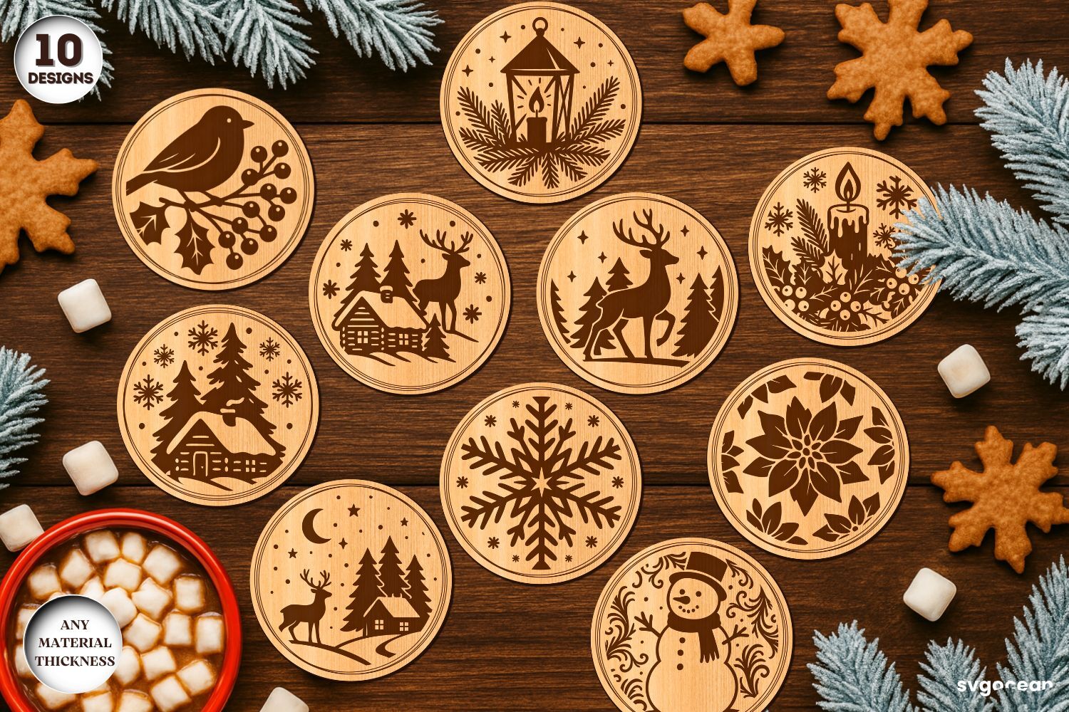 Winter Coffee Coasters SVG Bundle | Drink Coaster | SVG Number of designs included: 10 Formats included: AI, SVG, EPS, DXF, DWG Wood thickness: Any material thickness Specifications: Dimensions: Height: ≈ 10 cm (4in) Width: ≈ 10 cm (4in) Recommended material: Plywood, MDF, Acrylic, Plexiglas, Metal, Cardboard ✔️ HOW CAN I EXTRACT MY .ZIP FILE? You will need to extract to unzip or open your files. For mac you can simply double click the file and it should open automatically. For PC you can right click the file and choose extract all.  © All rights reserved