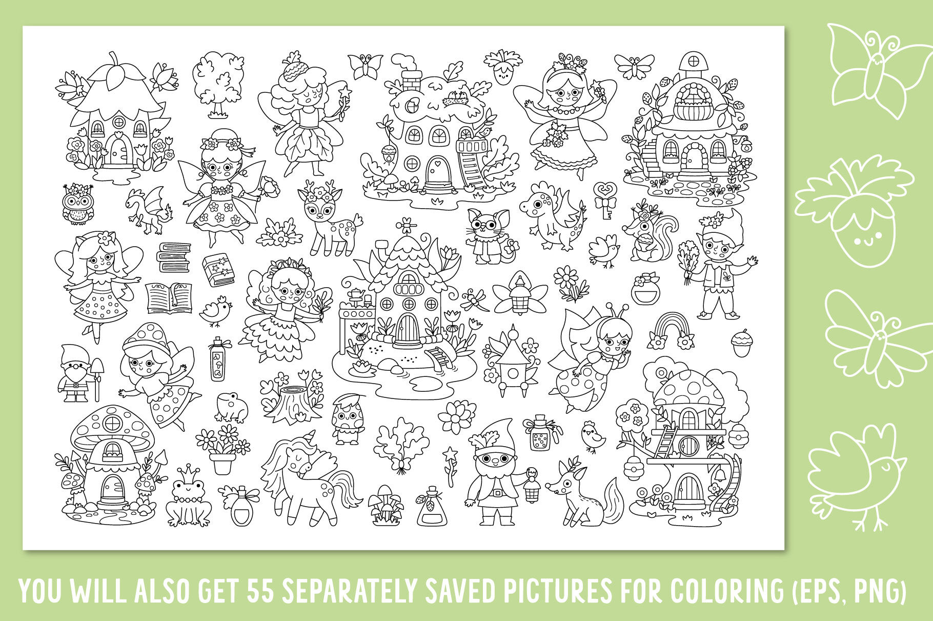 55 clipart for coloring (eps, separately saved png files on transparent background);