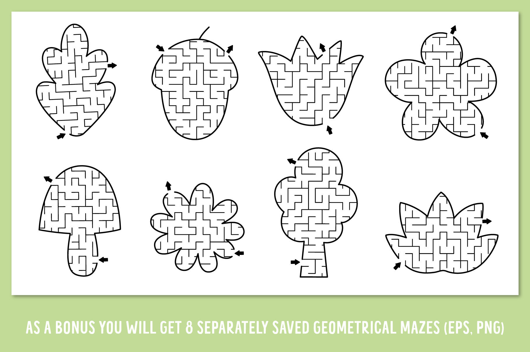 8 geometrical mazes (eps, separately saved png files on transparent background).