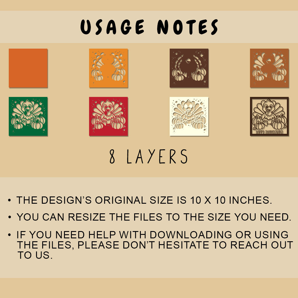 Thanksgiving Turkey 3D Shadow Box SVG, Happy Thanksgiving Layered SVG
