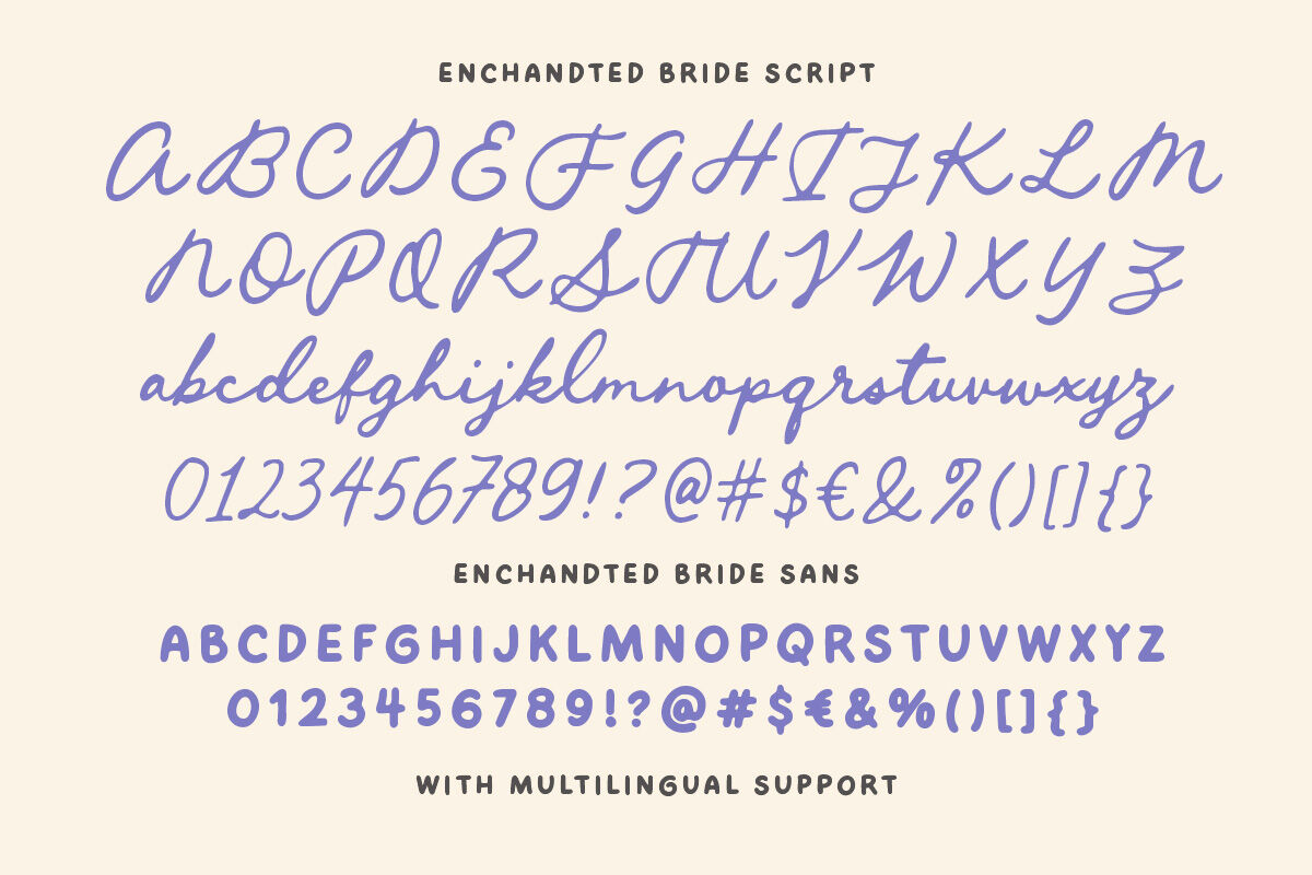 Enchanted Bride is a charming handmade font duo that blends a smooth bold sans with an elegant handwritten script. Its graceful curves and soft strokes create a romantic, timeless feel—perfect for invitations, branding, stationery, and any project that celebrates love and beauty. The duo pairing offers balance between sophistication and warmth, giving every design a touch of elegance and enchantment that feels both modern and heartfelt.