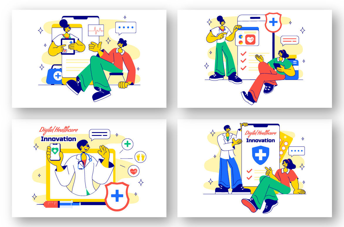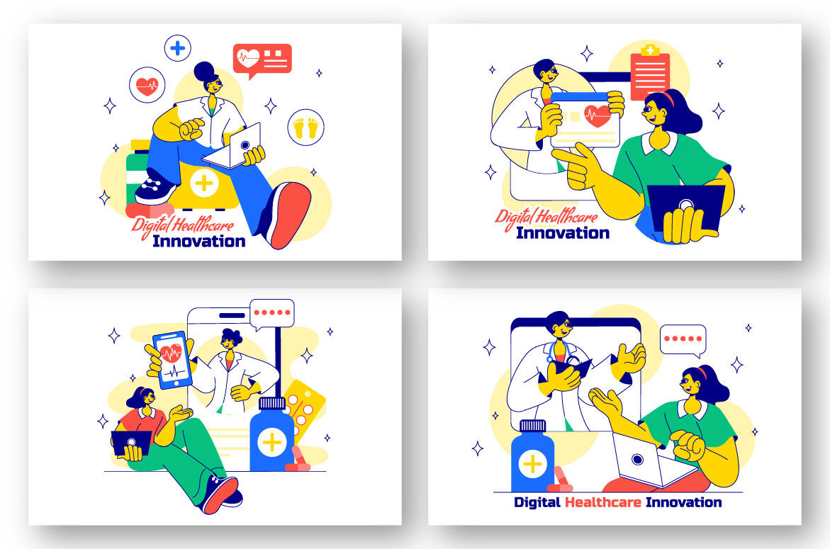 Digital Healthcare Innovation Illustration Featuring Health Technology And Medical Innovation Digital Technology For Patient Support And Diagnosis Suitable for Poster, Web Banner, Brochure, Landing Page and Others Background Template Features:    - Fully editable vector files, easy to edit the object, color and background     - Include 100% vector Ai, Eps 10, SVG    - PNG transparent background    - Include Psd Photoshop ( non grouped / unlabeled )    - Layered    - Preview jpeg    - Help File, to view more file properties    - Enjoy and don't hesitate to contact us    - Thanks :-)