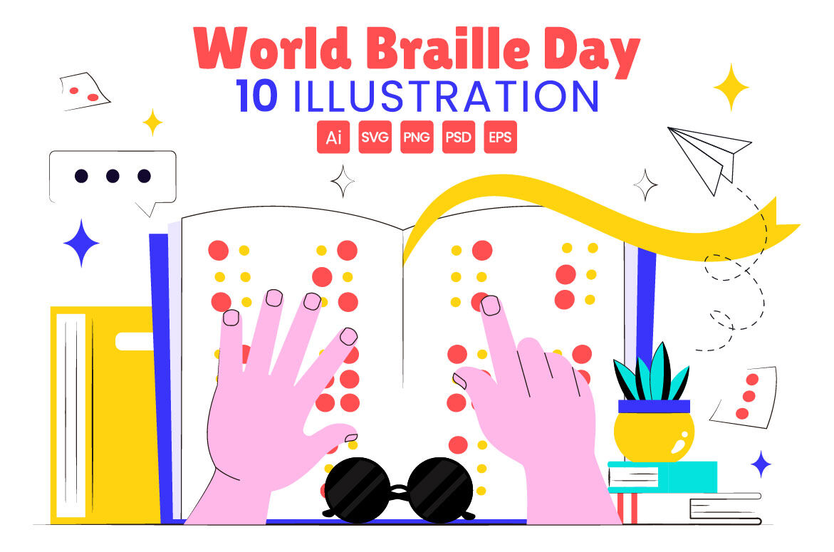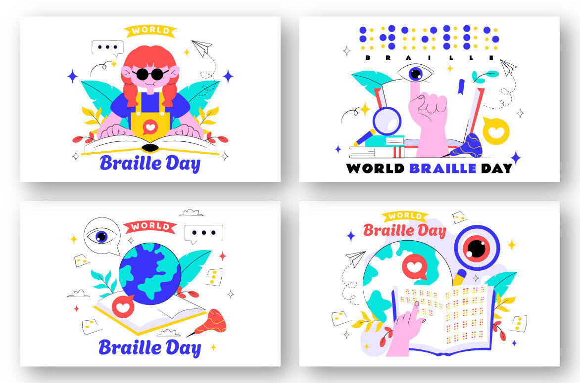 World Braille Day Vector Illustration Celebrating January 4th, Featuring the Braille Alphabet as a Means of Communication on a Flat Background Suitable for Poster, Web Banner, Brochure, Landing Page and Others Background Template Features:    - Fully editable vector files, easy to edit the object, color and background     - Include 100% vector Ai, Eps 10, SVG    - PNG transparent background    - Include Psd Photoshop ( non grouped / unlabeled )    - Layered    - Preview jpeg    - Help File, to view more file properties    - Enjoy and don't hesitate to contact us    - Thanks :-)