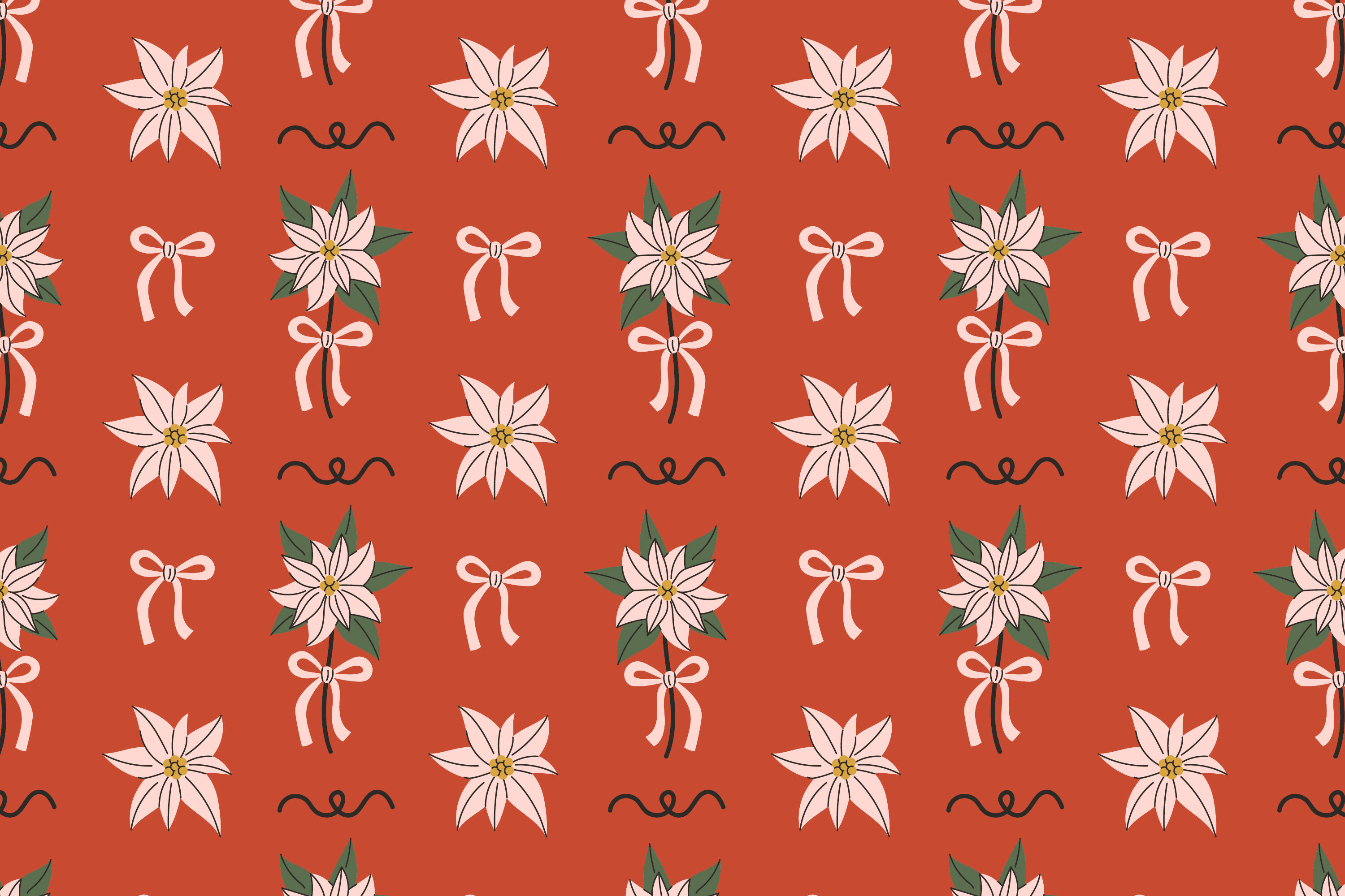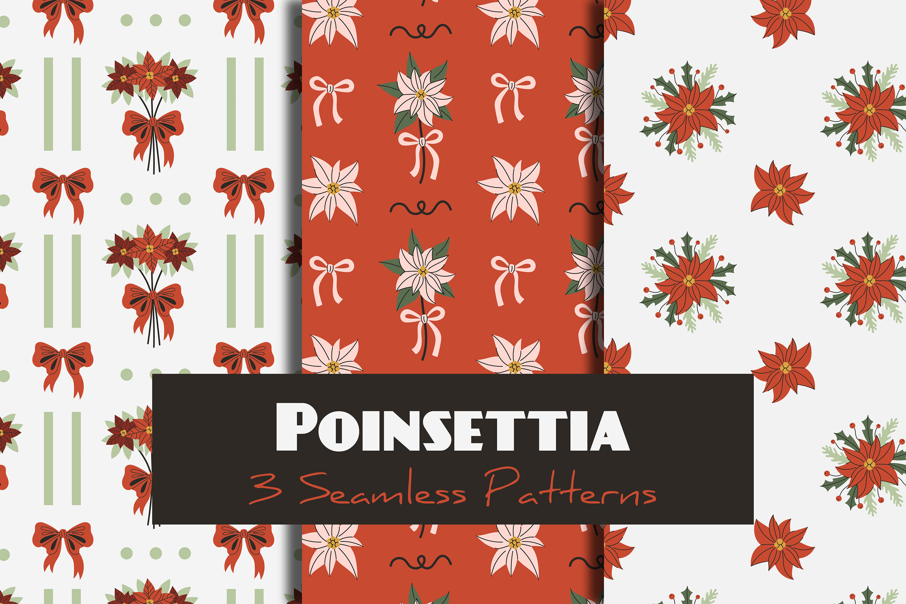 Christmas Poinsettia Seamless Patterns & Digital Papers