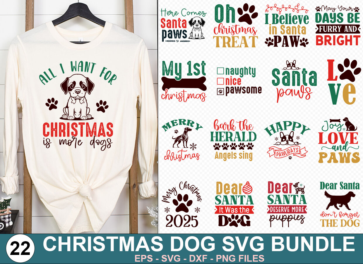 Christmas Dog SVG Bundle Get into the holiday spirit with this adorable Christmas Dog T-Shirt Designs ! Featuring a festive pup ready for the season, this design is perfect for creating cute and cheerful Christmas apparel, mugs, tote bags, cards, and more. ✅ Includes: 22 Designs (SVG, PNG, EPS, DXF) ✅ High-resolution 300 DPI for perfect printing ✅ Ready to use for T-shirts, hoodies, mugs, pillows, and more ✅ Compatible with Cricut, Silhouette Cameo, and other cutting software ✅ Instant digital download – no physical item will be shipped Spread some paw-some holiday cheer with this festive Christmas Dog design — perfect for pet lovers and holiday gift projects!
