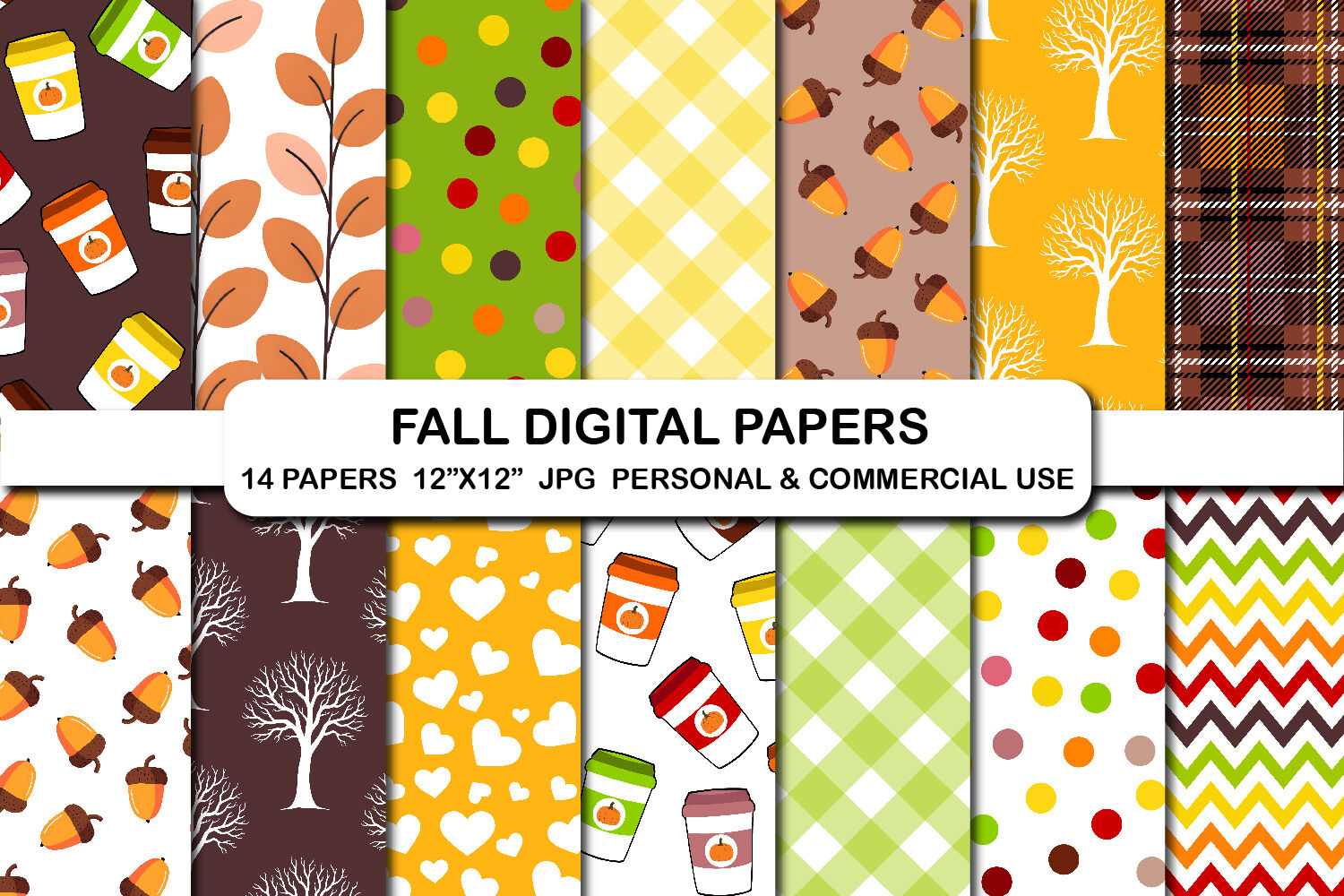 Fall Colors Pattern Digital Papers, Fall Autumn Digital Paper Pack