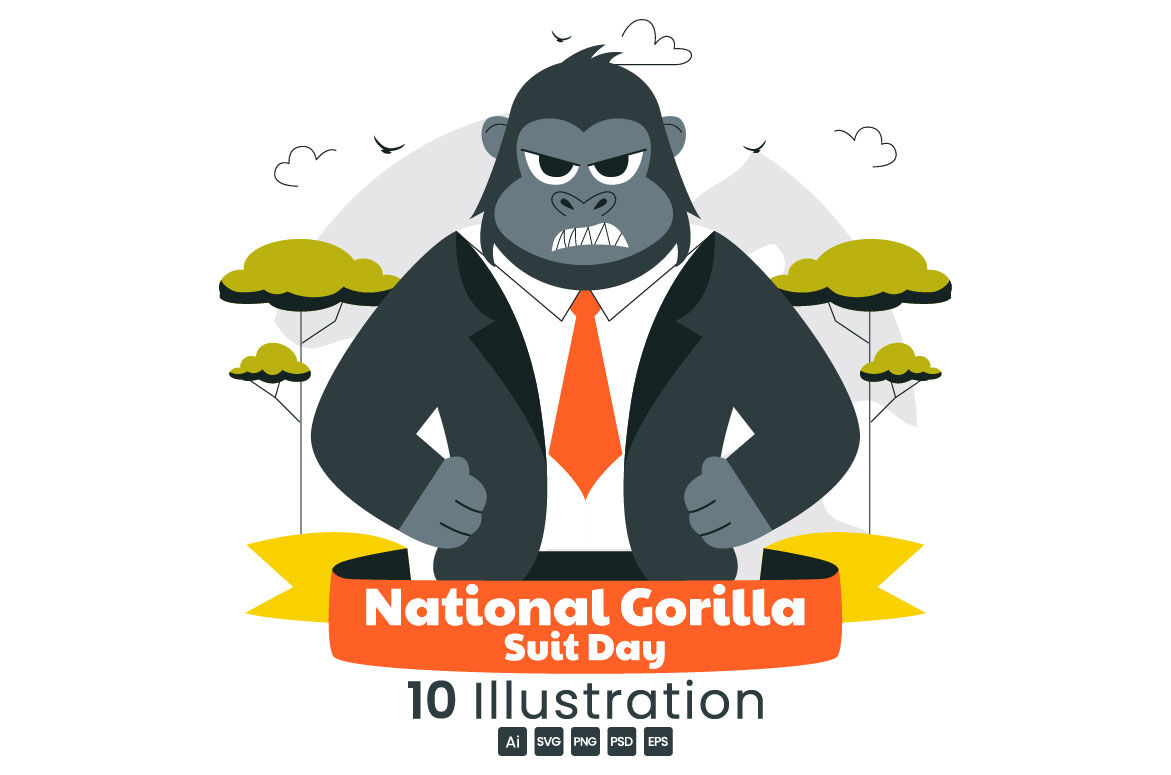 National Gorilla Suit Day Vector Illustration on January 31 Featuring a Gorilla Dressed in a Suit in a Flat Cartoon Style Background Suitable for Poster, Web Banner, Brochure, Landing Page and Others Background Template Features:    - Fully editable vector files, easy to edit the object, color and background     - Include 100% vector Ai, Eps 10, SVG    - PNG transparent background    - Include Psd Photoshop ( non grouped / unlabeled )    - Layered    - Preview jpeg    - Help File, to view more file properties    - Enjoy and don't hesitate to contact us    - Thanks :-)