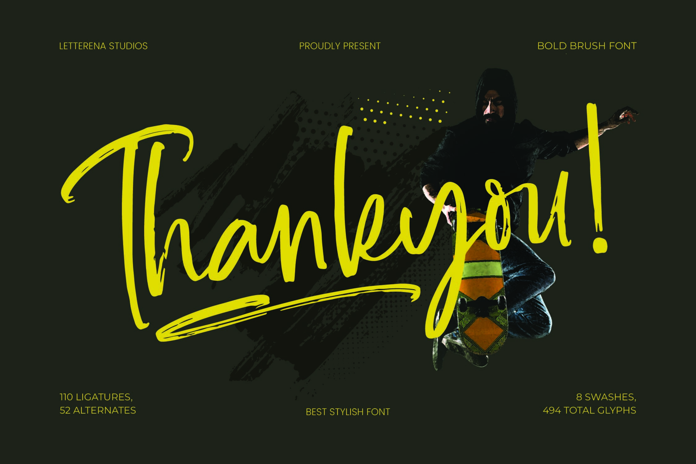 Daltonse - Best Stylish Font, Daltonse is a bold brush script font that combines natural hand-drawn energy with elegant modern styling. Featuring 101 ligatures, 52 alternates, and 8 swashes across 420 total glyphs, this typeface captures the authentic texture of brush lettering — perfect for branding, logos, posters, packaging, invitations, and social media graphics. Each stroke of Daltonse reflects confidence and movement, making it ideal for designers who want to add a personal yet powerful touch to their creations. With its stylish curves and handcrafted feel, Dattongé delivers bold artistic flair to both print and digital projects.