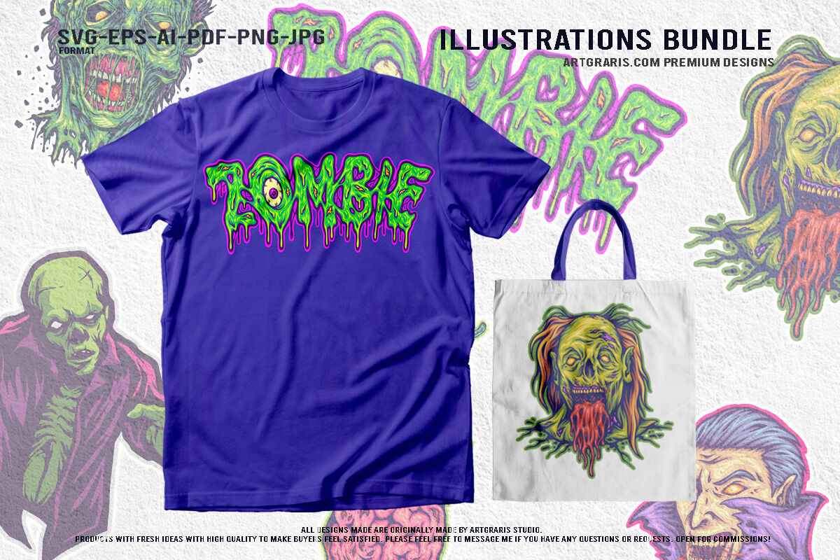 Evil zombie vampire monster horror creepy grotesque undead graphic col