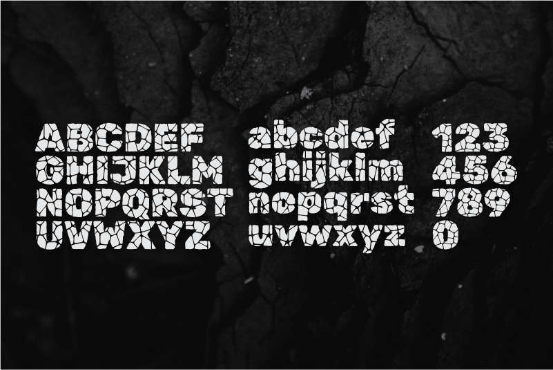 STONE PATTERN – Textured Display Font STONE PATTERN is a unique display font inspired by the natural texture and shape of stone. Each letter is carefully crafted with a rugged stone pattern, giving your design a strong, rustic, and organic look. Perfect for: Nature, adventure, or outdoor-themed designs Bold and natural logo branding Posters, headlines, and creative titles Product packaging, merchandise, and decorations With its realistic stone texture and solid character style, STONE PATTERN will make your designs stand out with a powerful and distinctive appearance.