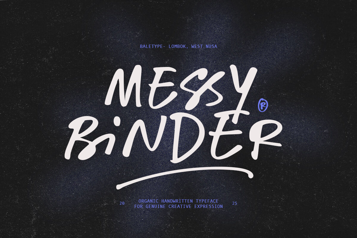 Messy Binder is a stylish and organic handwritten all caps font. With bunch of ligatures, this font will make your design more looks naturally handwritten. You can use this font for any purposes such as quote, branding, caption, and any project that require messy looks. Messy Binder also included scribble that you can use to add the messiness. This font also support multi language.