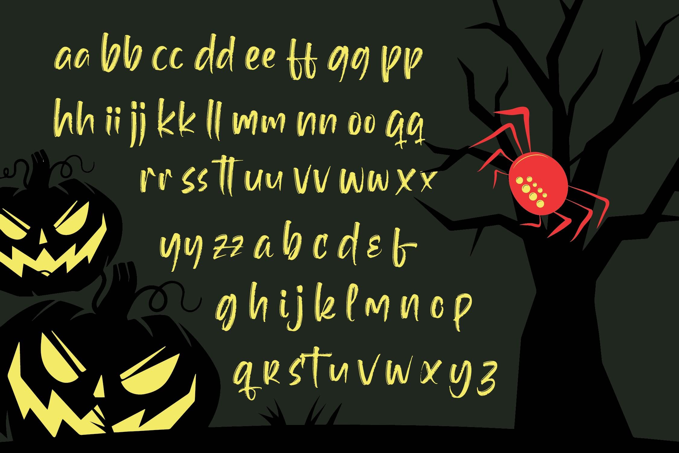 Hallow Mistelar - Modern Brush Font , Hallow Mistelar is a modern brush font with a spooky, energetic, and hand-painted Halloween vibe. Its rough brush strokes, expressive texture, and playful irregular shapes make this typeface perfect for Halloween posters, party invitations, horror-themed merchandise, trick-or-treat packaging, YouTube thumbnails, stickers, and seasonal branding. With 26 ligatures and 26 alternates, Hallow Mistelar gives you plenty of stylistic freedom to craft bold titles and creepy designs filled with personality. Whether you want a fun scary look or a bold horror brush style, this font brings the perfect Halloween spirit to any project.