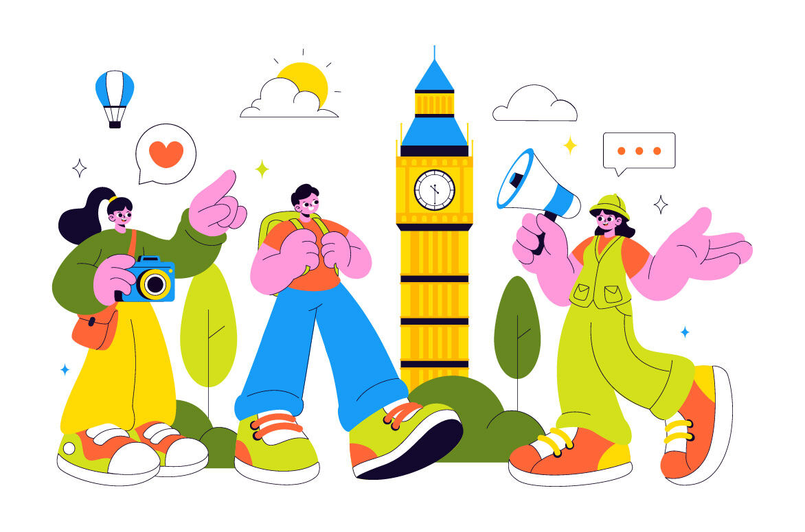 Travel Guide and Tour Vector Illustration Showing Interesting Places to a Group of Tourists for Vacation Planning in a Flat Style Cartoon Background Suitable for Poster, Web Banner, Brochure, Landing Page and Others Background Template Features:    - Fully editable vector files, easy to edit the object, color and background     - Include 100% vector Ai, Eps 10, SVG    - PNG transparent background    - Include Psd Photoshop ( non grouped / unlabeled )    - Layered    - Preview jpeg    - Help File, to view more file properties    - Enjoy and don't hesitate to contact us    - Thanks :-)