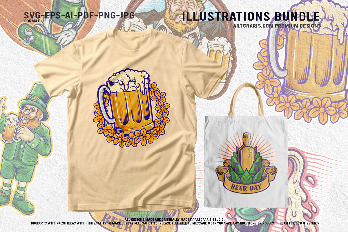 Cartoon Beer Illustration For Bar And Pub Festive St Patrick's Day