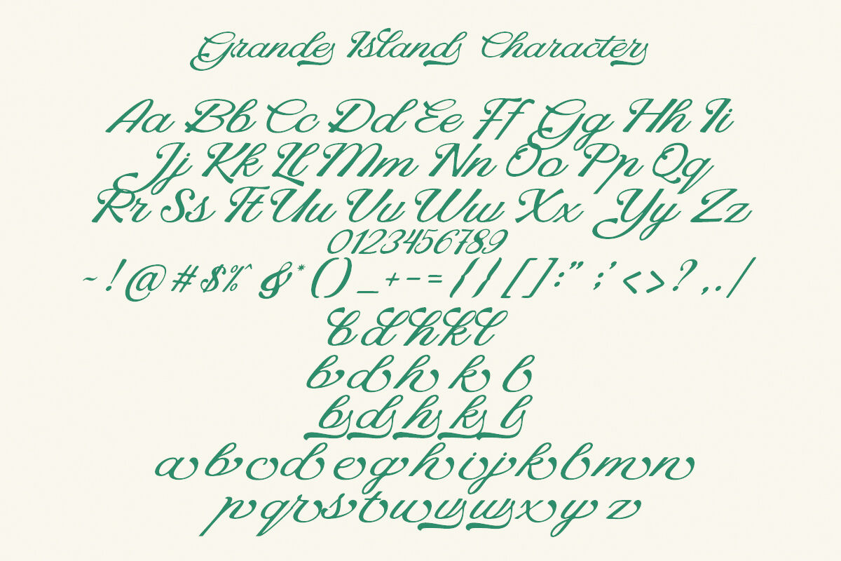 The flowing characters are ideal for creating engaging messages. Combine Grande Island New Vintage Brand with a variety of alternate characters to suit your project.