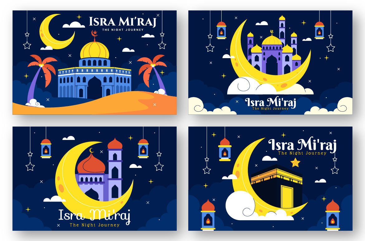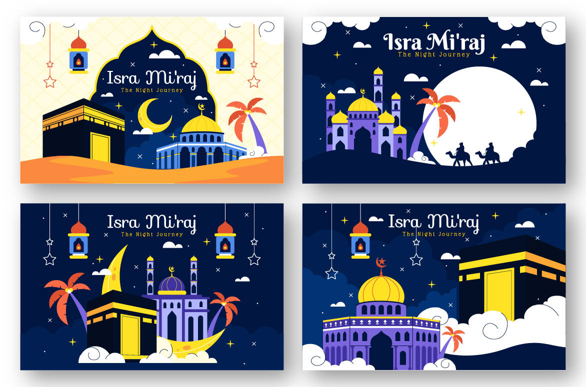 Isra Mi'raj Vector Illustration, featuring The Night Journey Of Prophet Muhammad With Mosque And Lantern In An Islamic Holiday Flat Background Suitable for Poster, Web Banner, Brochure, Landing Page and Others Background Template Features:    - Fully editable vector files, easy to edit the object, color and background     - Include 100% vector Ai, Eps 10, SVG    - PNG transparent background    - Include Psd Photoshop ( non grouped / unlabeled )    - Layered    - Preview jpeg    - Help File, to view more file properties    - Enjoy and don't hesitate to contact us    - Thanks :-)