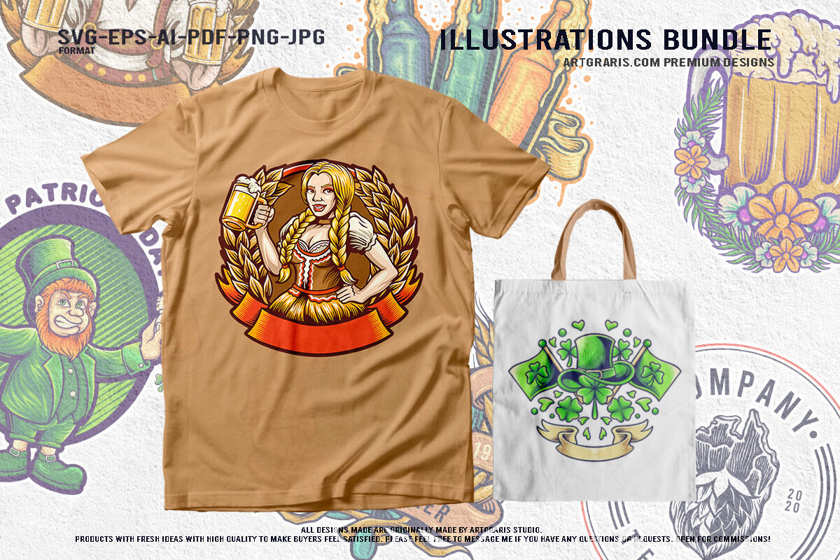 Octoberfest And St Patricks Day Beer Festival Vector Set