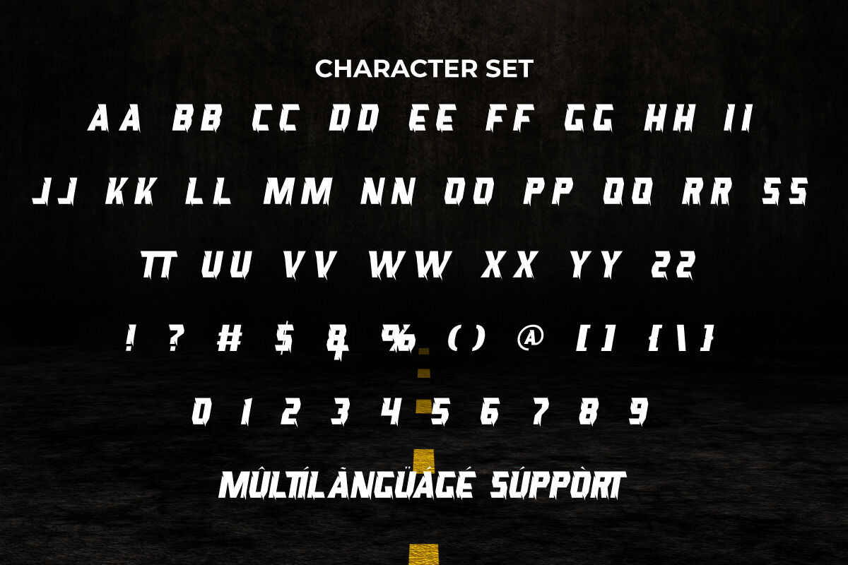 Furious Race Font also supports multilingual characters which are ready to use either on Windows or Mac machines with a simple installation. All of these characters are available through the glyph panel, moreover each letter has its own unicode (PUA) so you can access all the characters easily