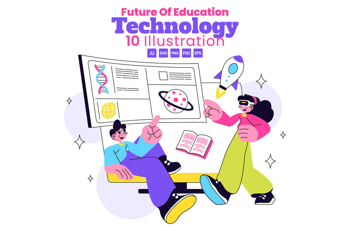 Future of Education Technology Vector Illustration Featuring Modern Digital Learning and Machines For Smart Academic Tools And Edtech In a Background Suitable for Poster, Web Banner, Brochure, Landing Page and Others Background Template Features:    - Fully editable vector files, easy to edit the object, color and background     - Include 100% vector Ai, Eps 10, SVG    - PNG transparent background    - Include Psd Photoshop ( non grouped / unlabeled )    - Layered    - Preview jpeg    - Help File, to view more file properties    - Enjoy and don't hesitate to contact us    - Thanks :-)